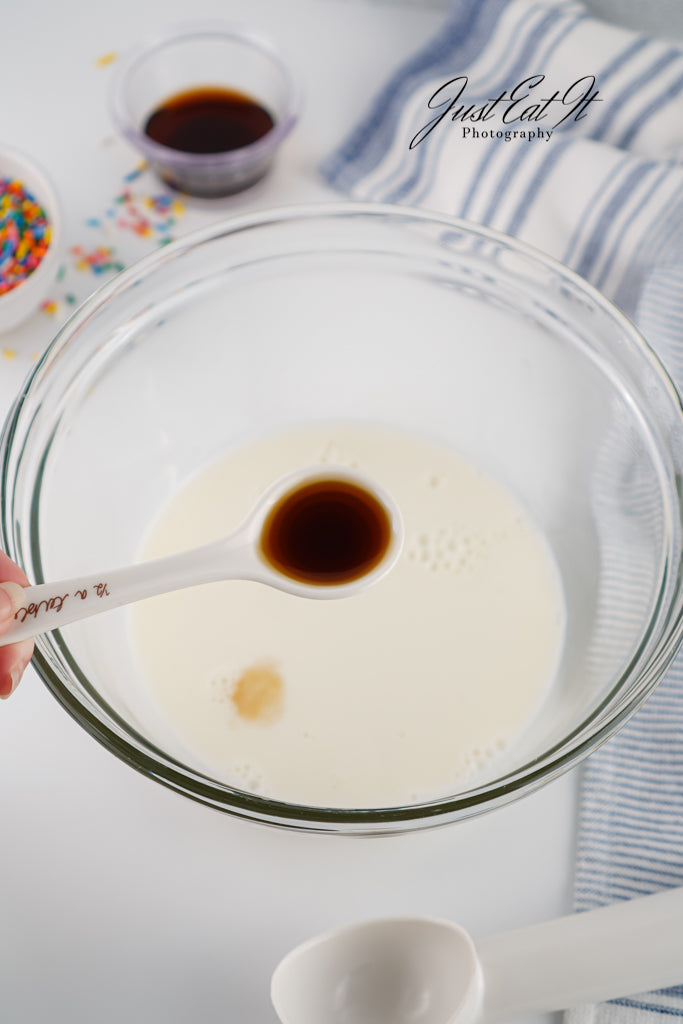 - Ingredients: snow, vanilla extract, milk, sugar, salt, and sprinkles.