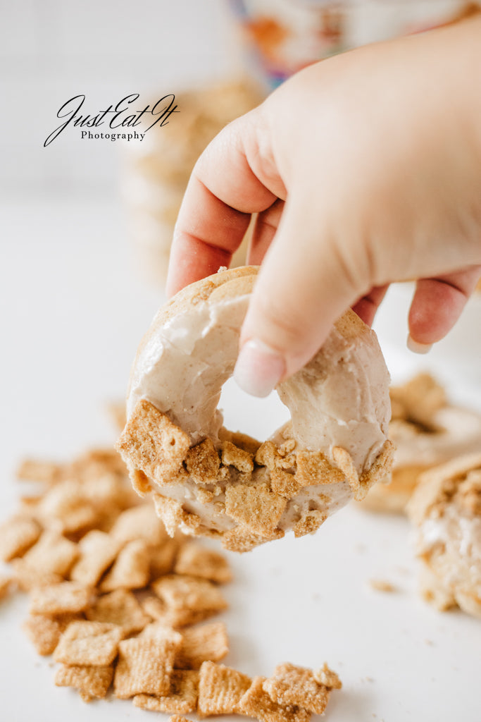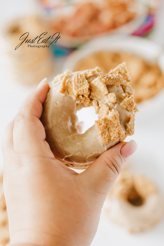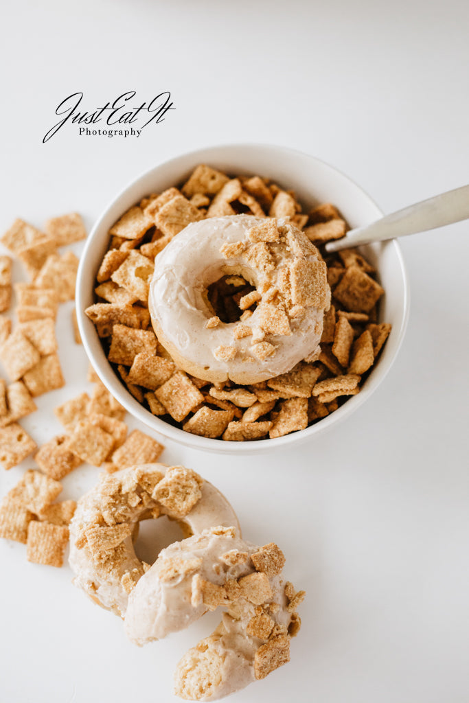 - If you’re looking for a new breakfast idea, try these Cinnamon Toast Crunch Donuts! Combine the classic taste of Cinnamon Toast Crunch cereal with a traditional baked donut, and you make a piece of sweet magic. Top with a maple glaze and more cereal, and you have the perfect breakfast.
