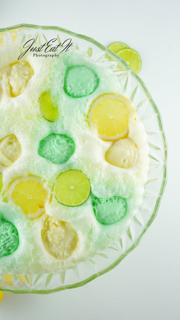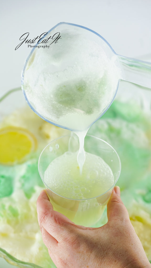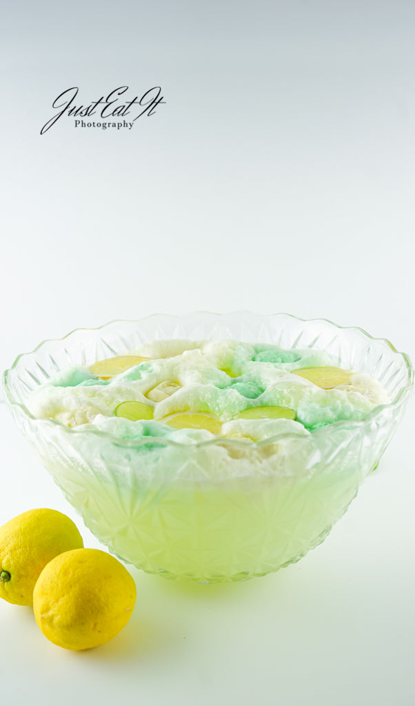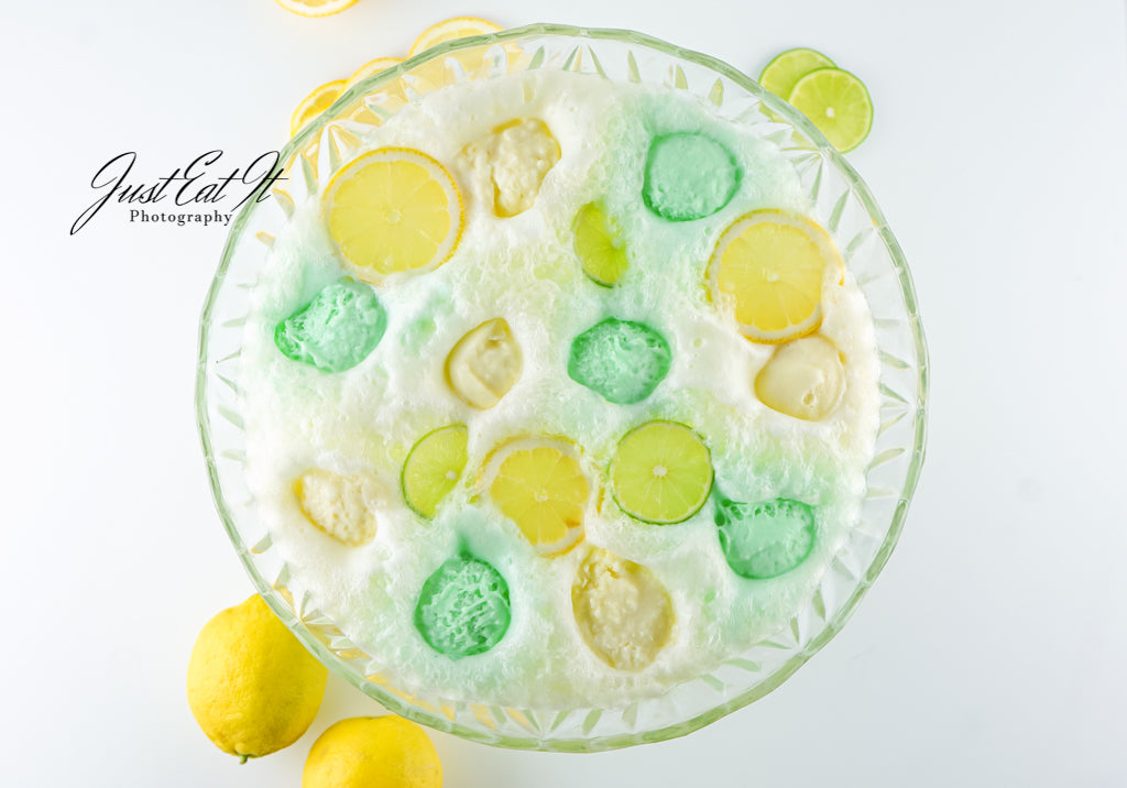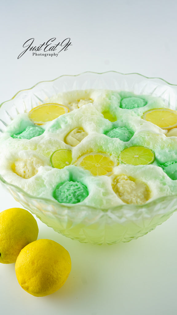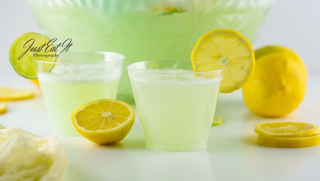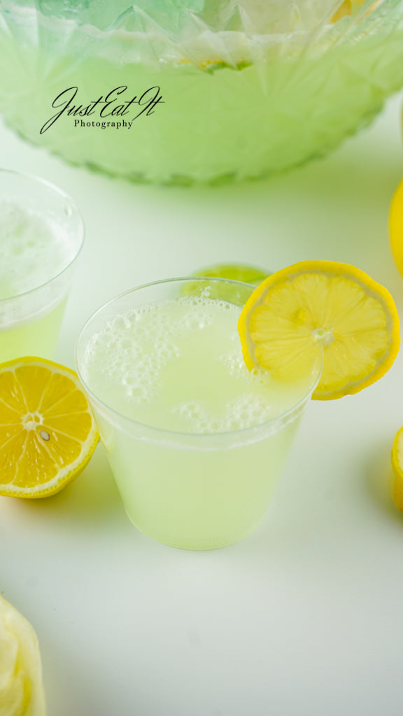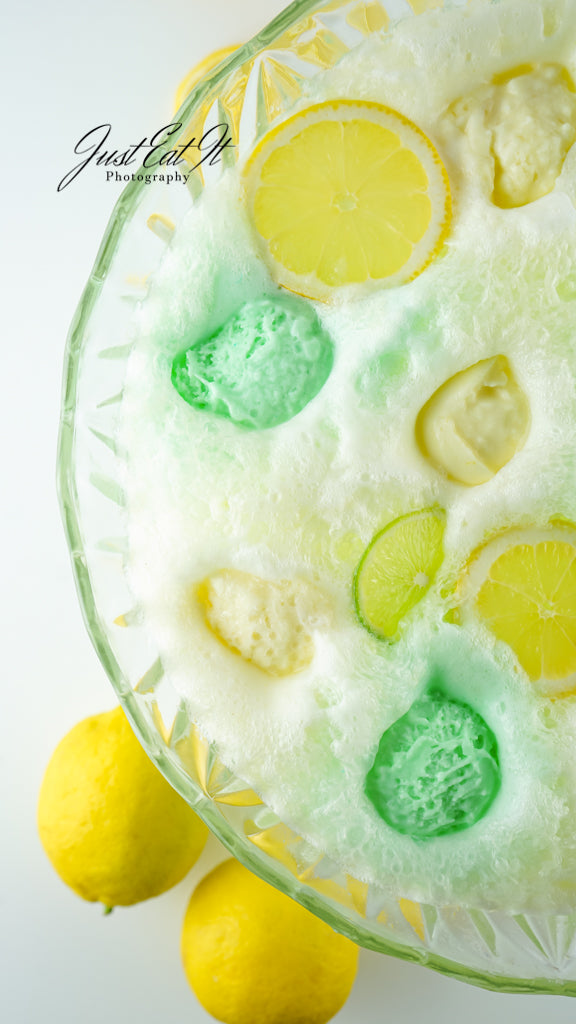- Ingredients include 7UP, lemonade juice, and sherbet, with lemon/lime slices as an optional garnish.