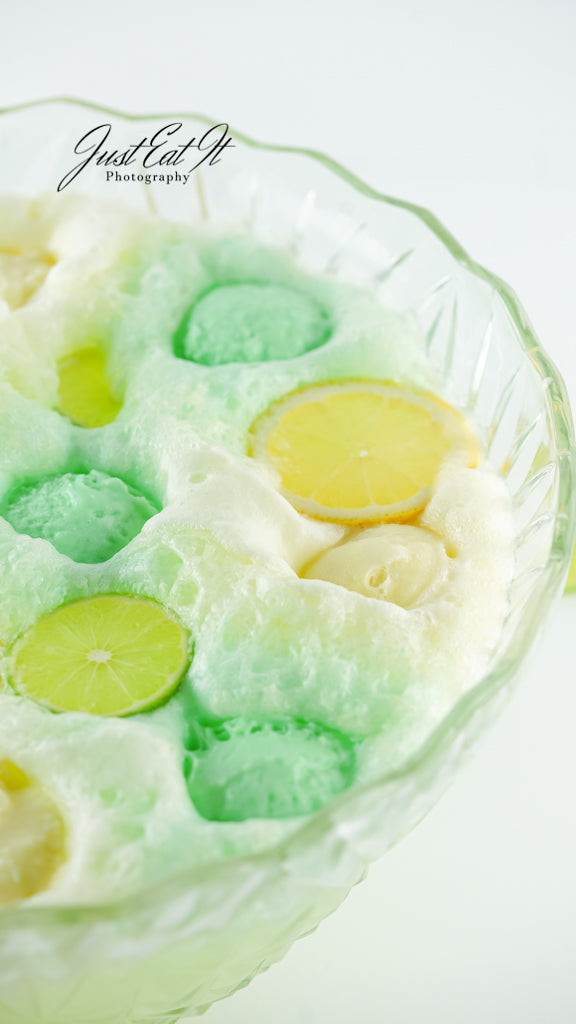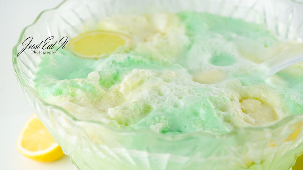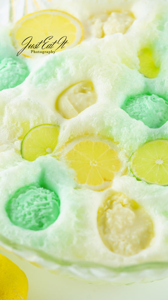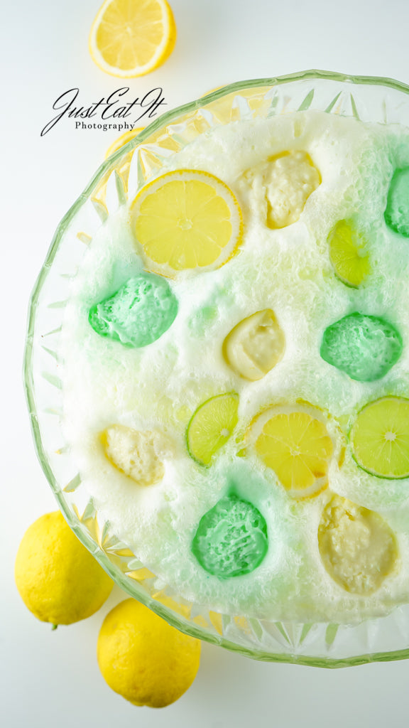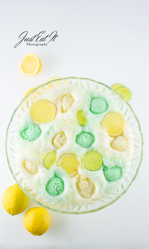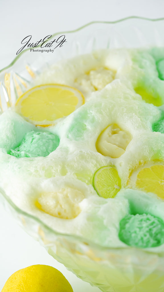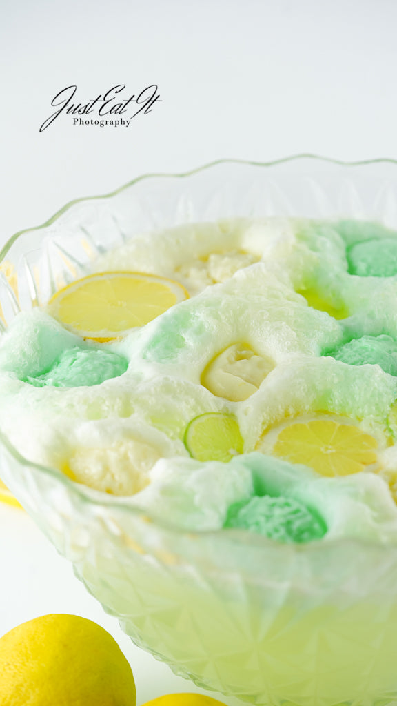 - Ingredients include 7UP, lemonade juice, and sherbet, with lemon/lime slices as an optional garnish.