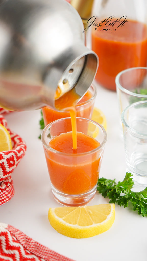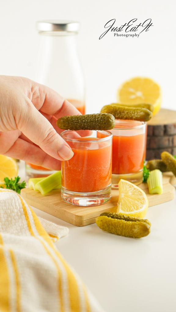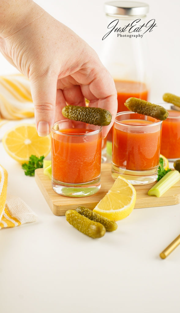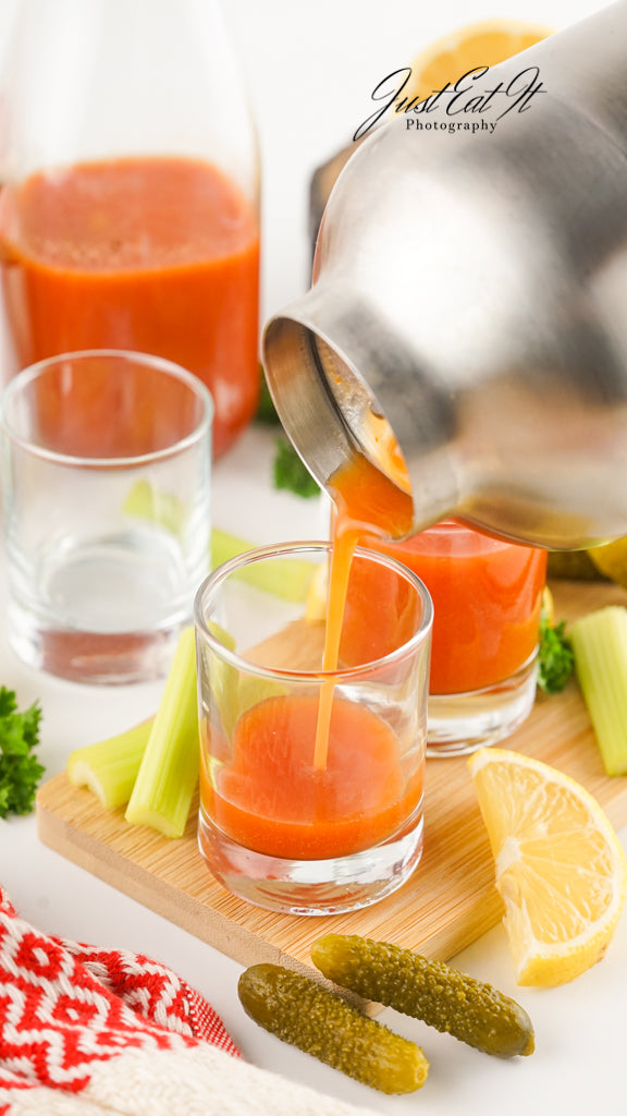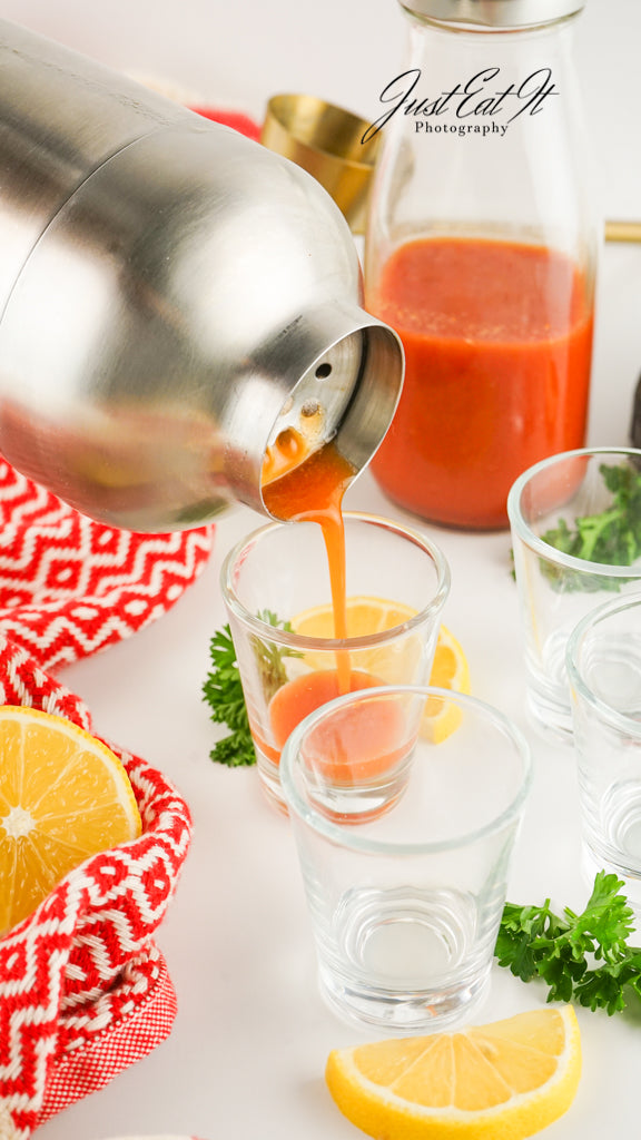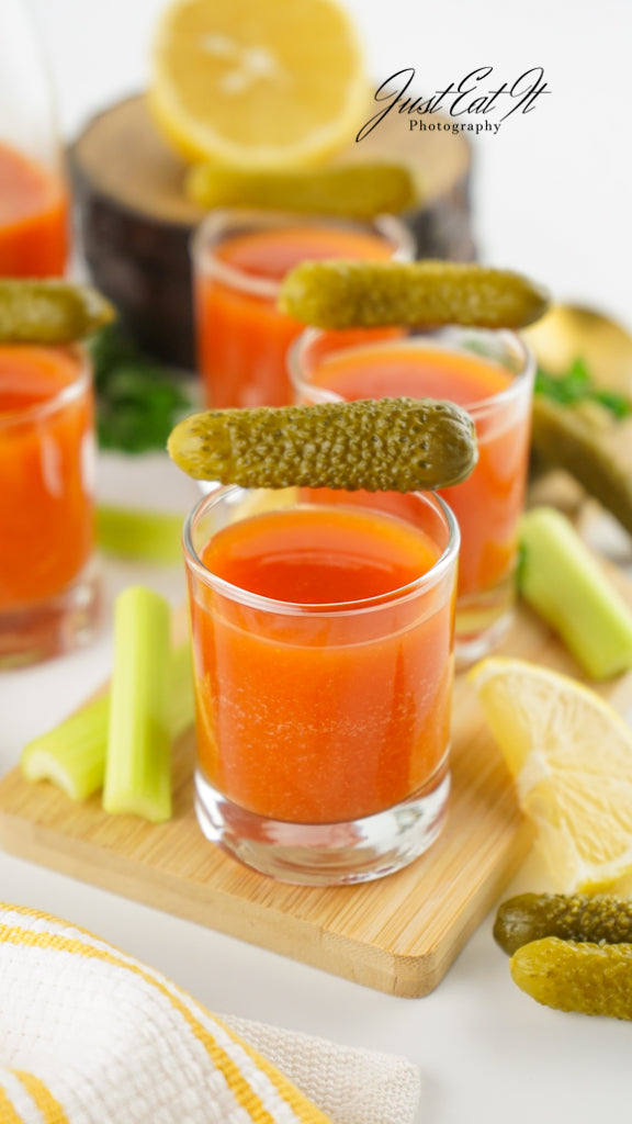 - If you have a blast of a party planned or just chilling with friends, make this Hangover Shot ahead of time! Each ingredient included is proven to fight the side effects of a hangover. The nutrient-dense tomato juice paired with the electrolyte heavy pickle juice and caffeine all pack their punch.