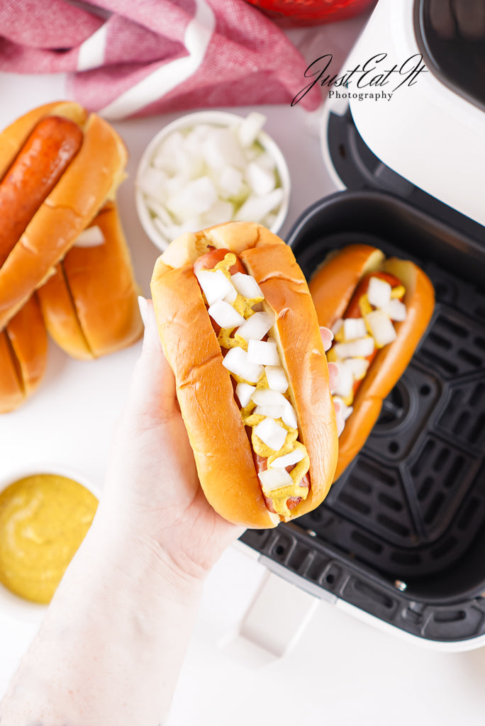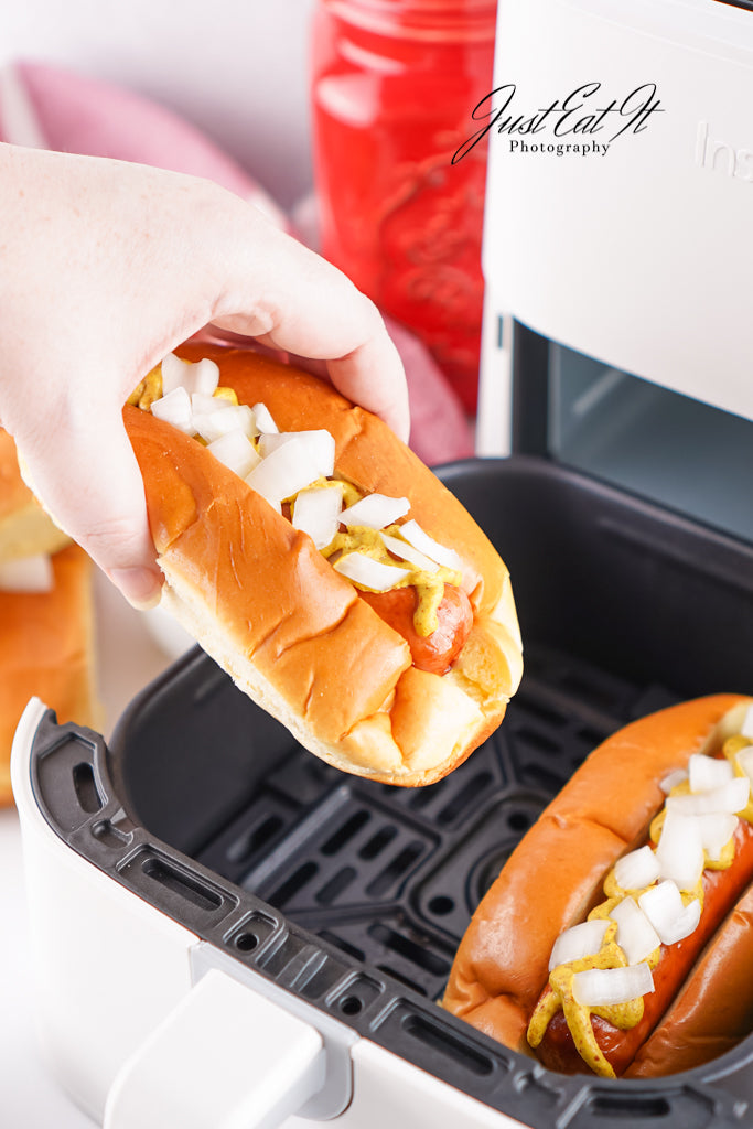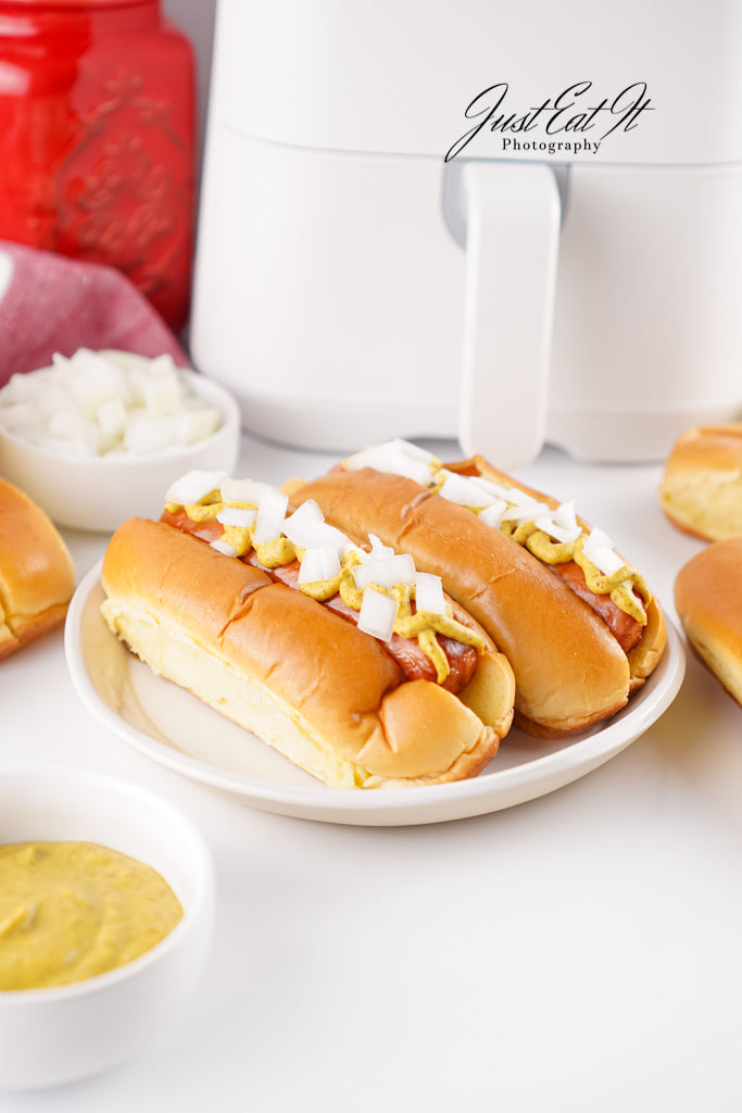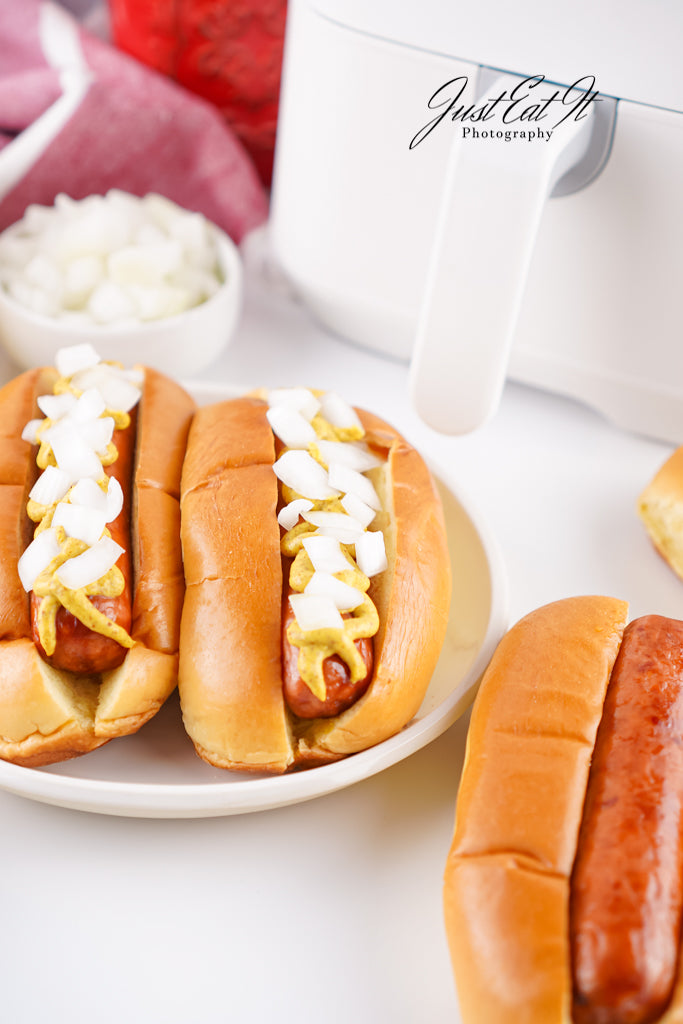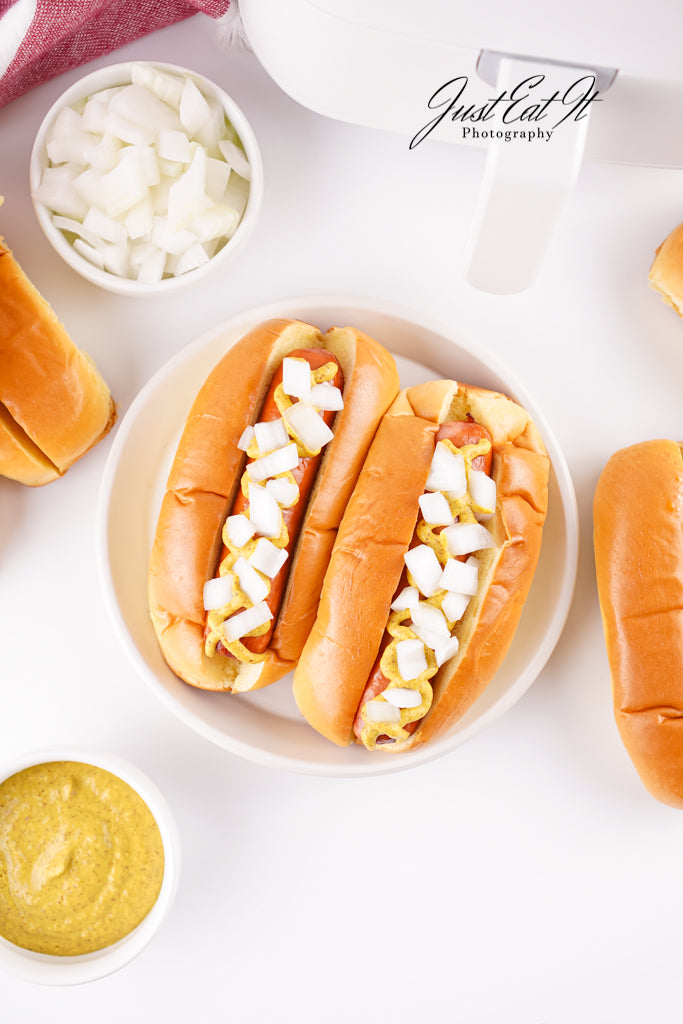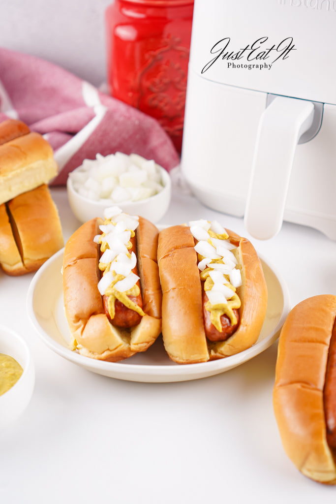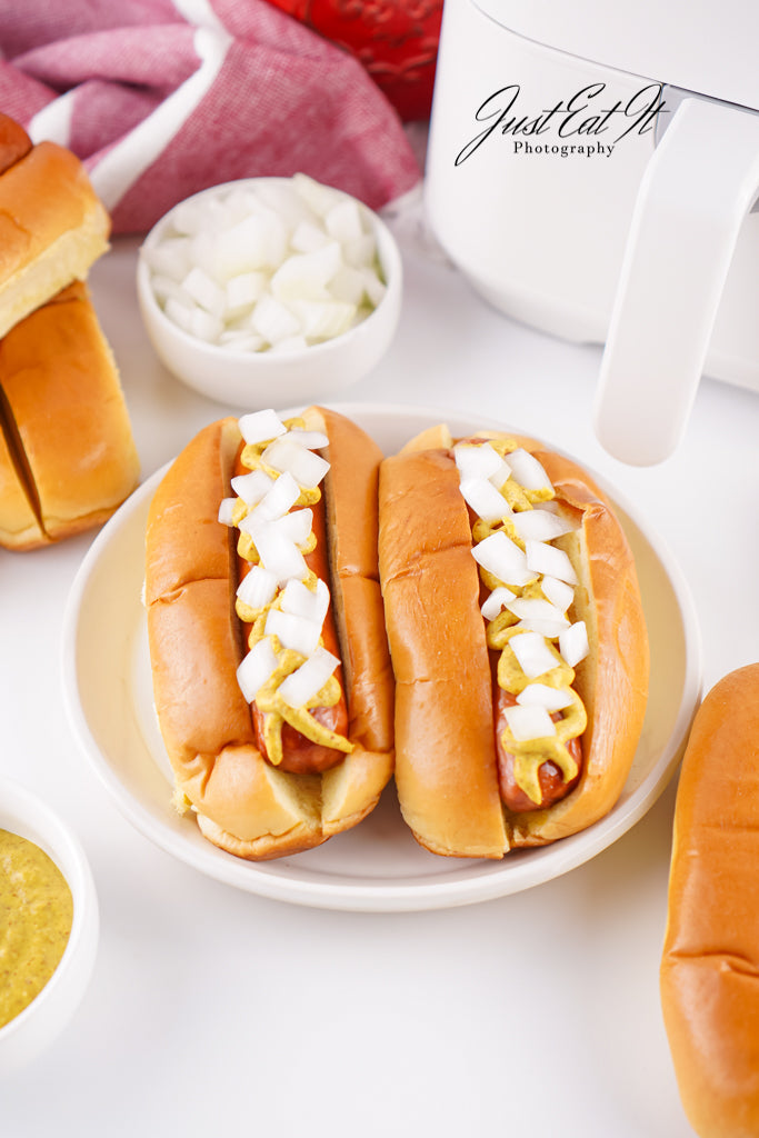 - Ingredients: smoked sausages with sausage buns, onions, and mustard as optional ingredients.