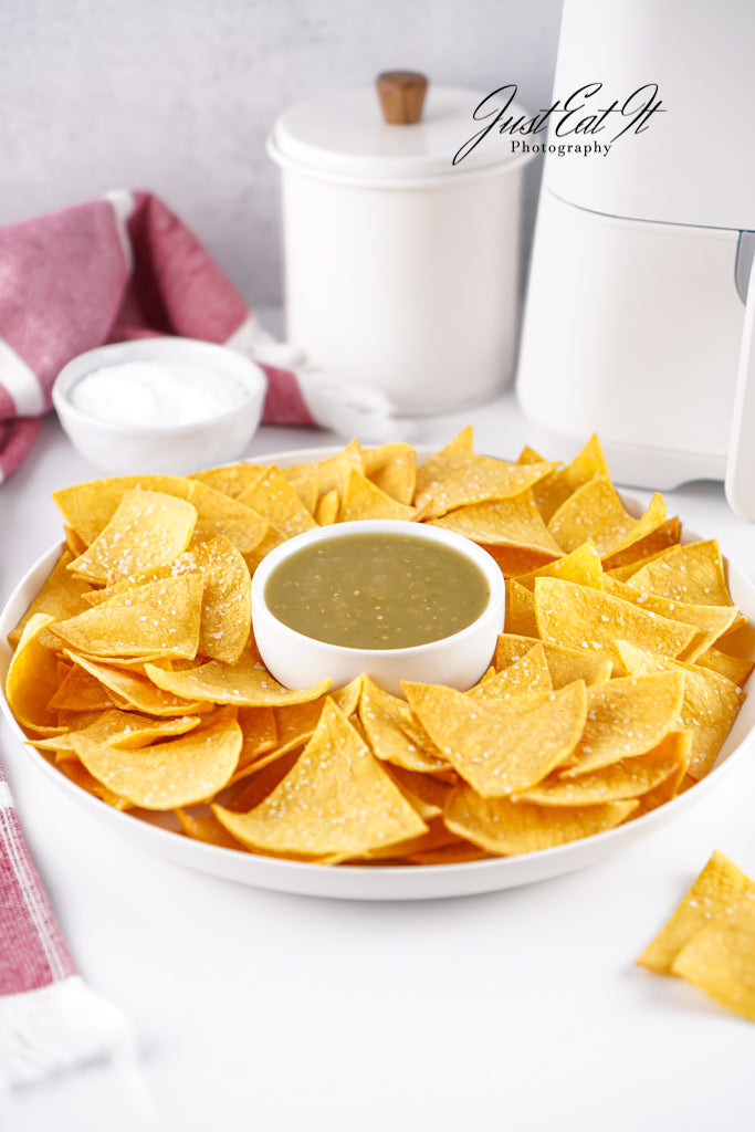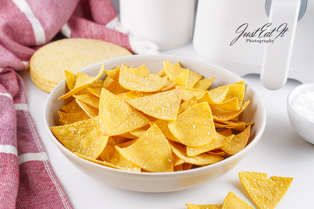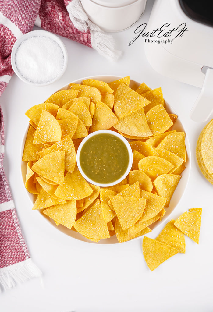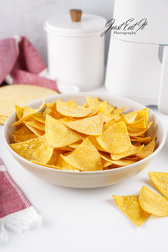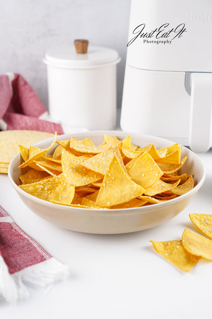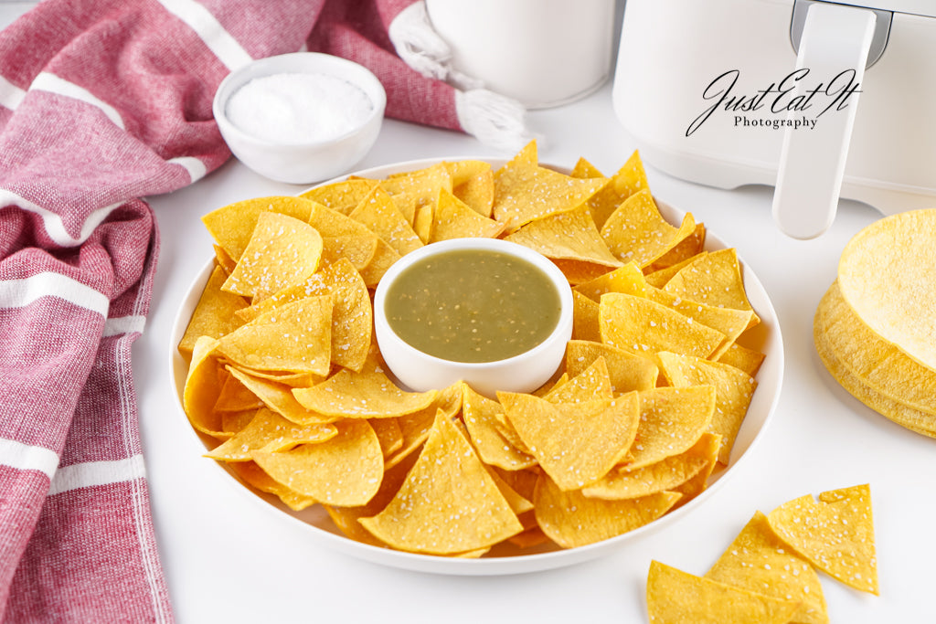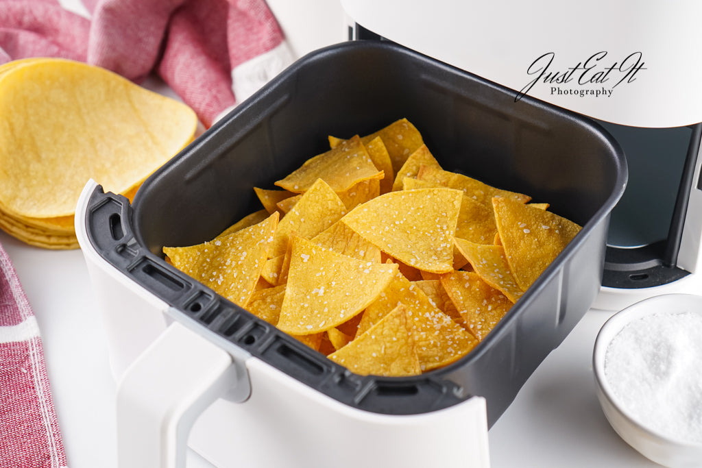 - Intro: You only need three ingredients to make your own Air Fryer Tortilla Chips. Cheaper and so much better than store-bought, these chips have the perfect crunch. Great for dipping in just about anything or even by themselves as a snack.