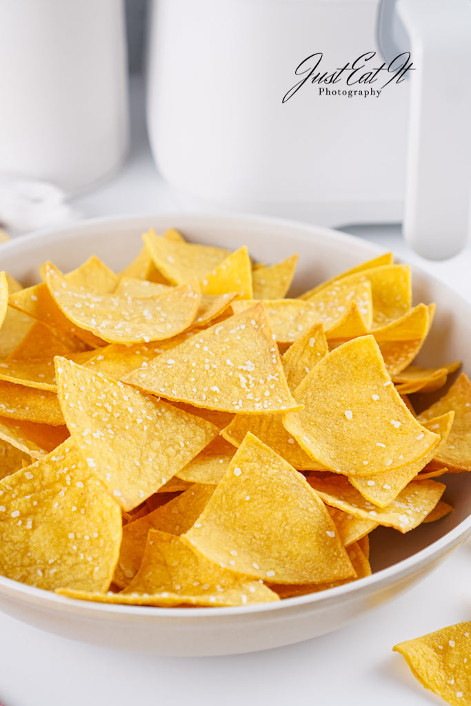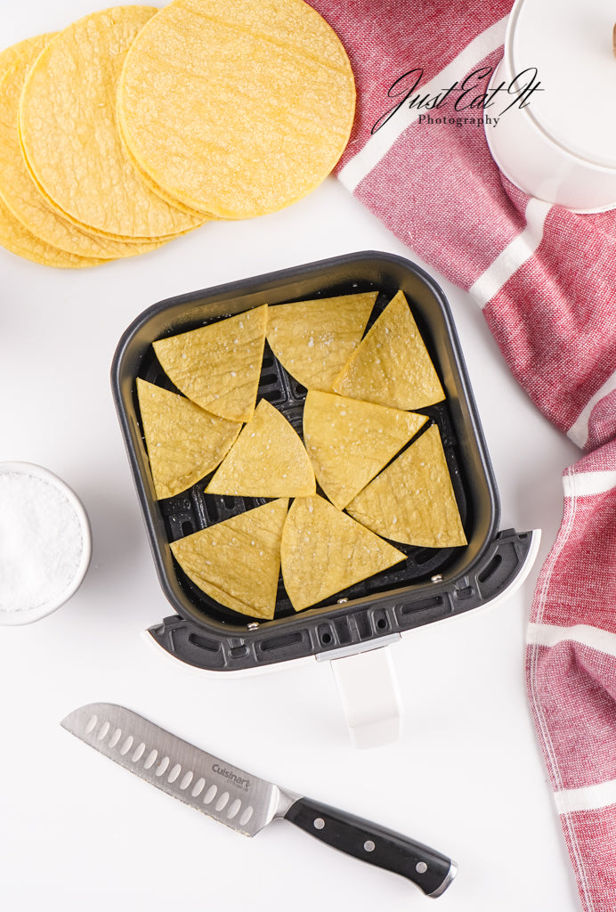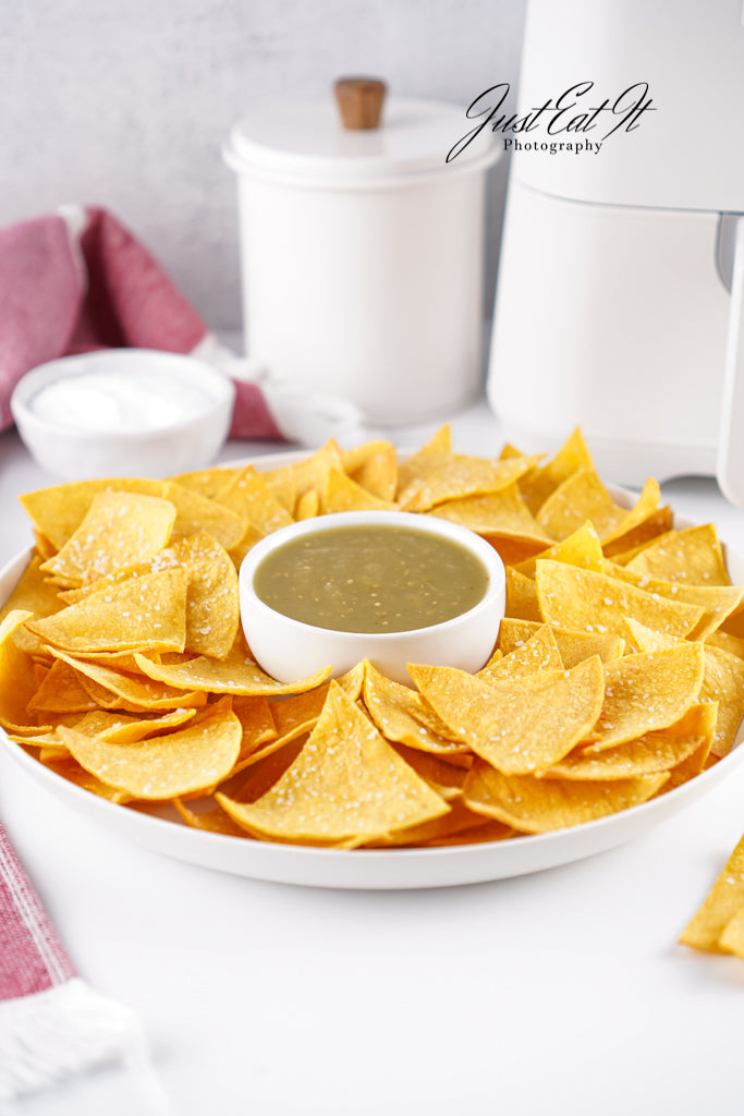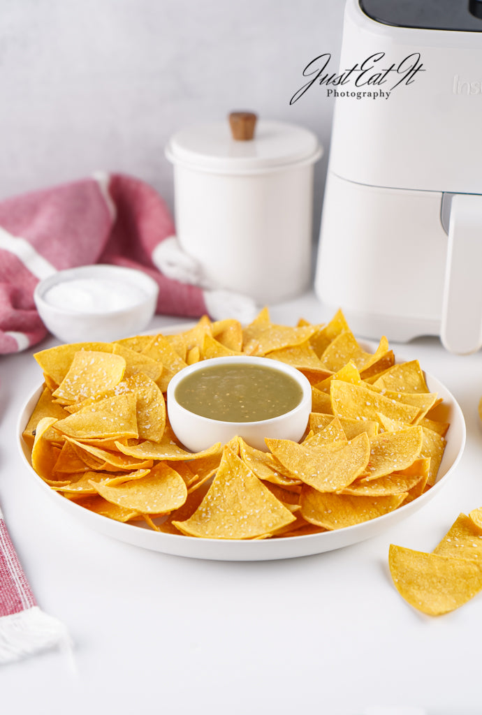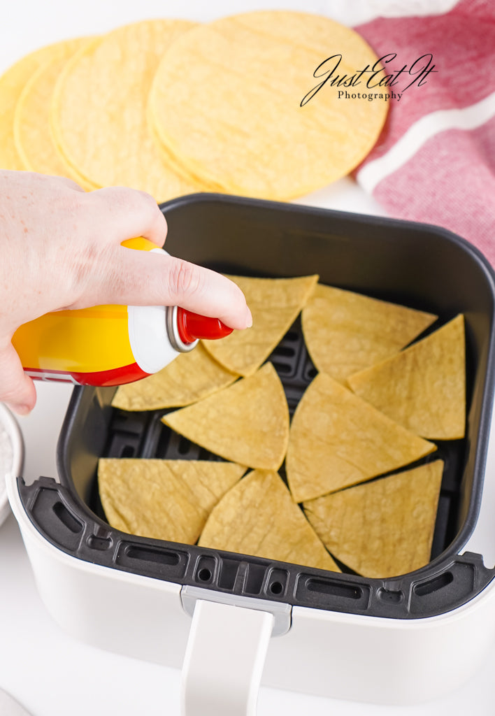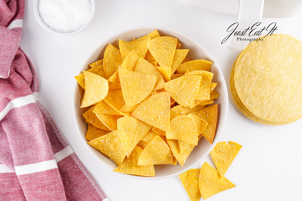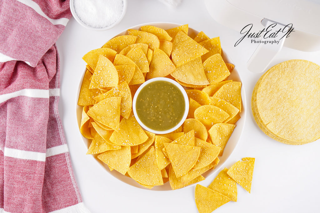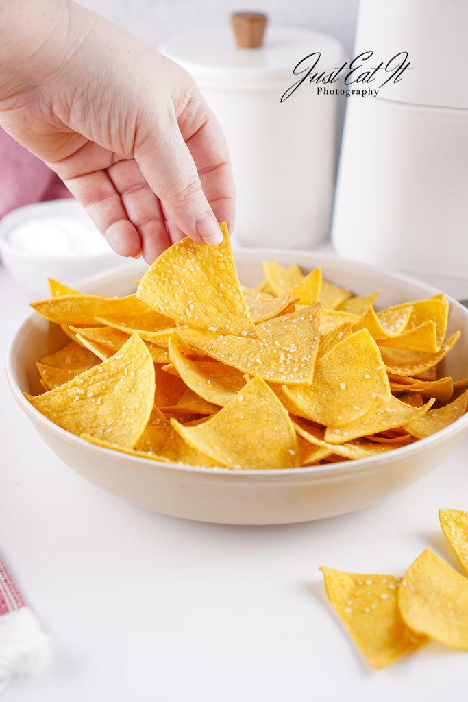 - Intro: You only need three ingredients to make your own Air Fryer Tortilla Chips. Cheaper and so much better than store-bought, these chips have the perfect crunch. Great for dipping in just about anything or even by themselves as a snack.