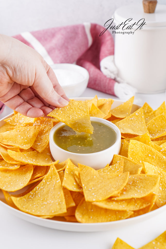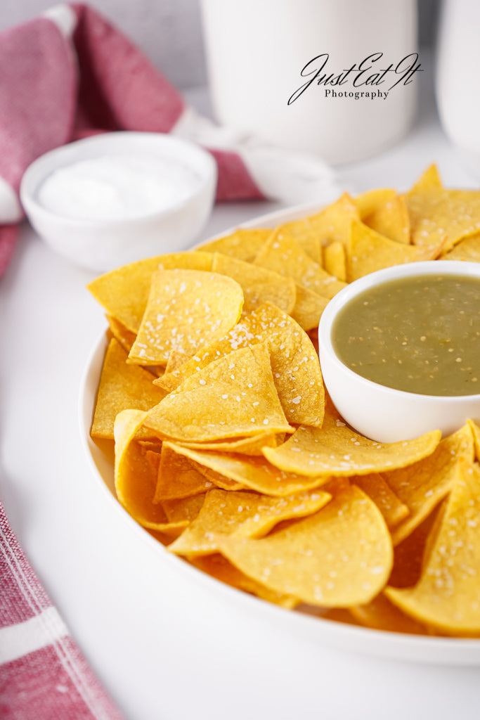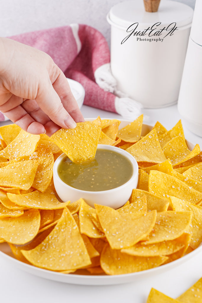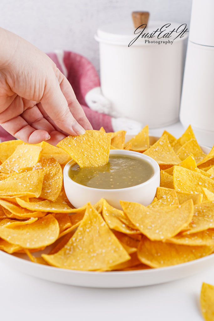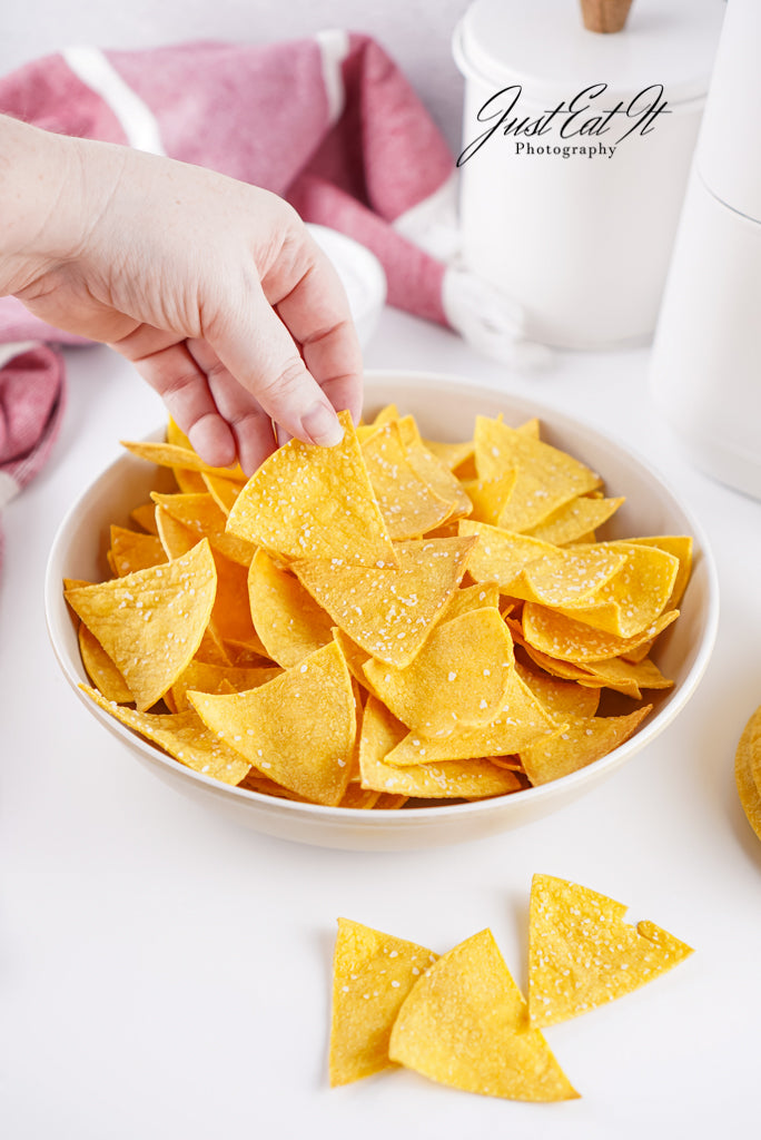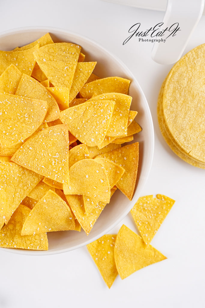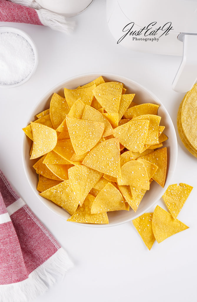 - Intro: You only need three ingredients to make your own Air Fryer Tortilla Chips. Cheaper and so much better than store-bought, these chips have the perfect crunch. Great for dipping in just about anything or even by themselves as a snack.