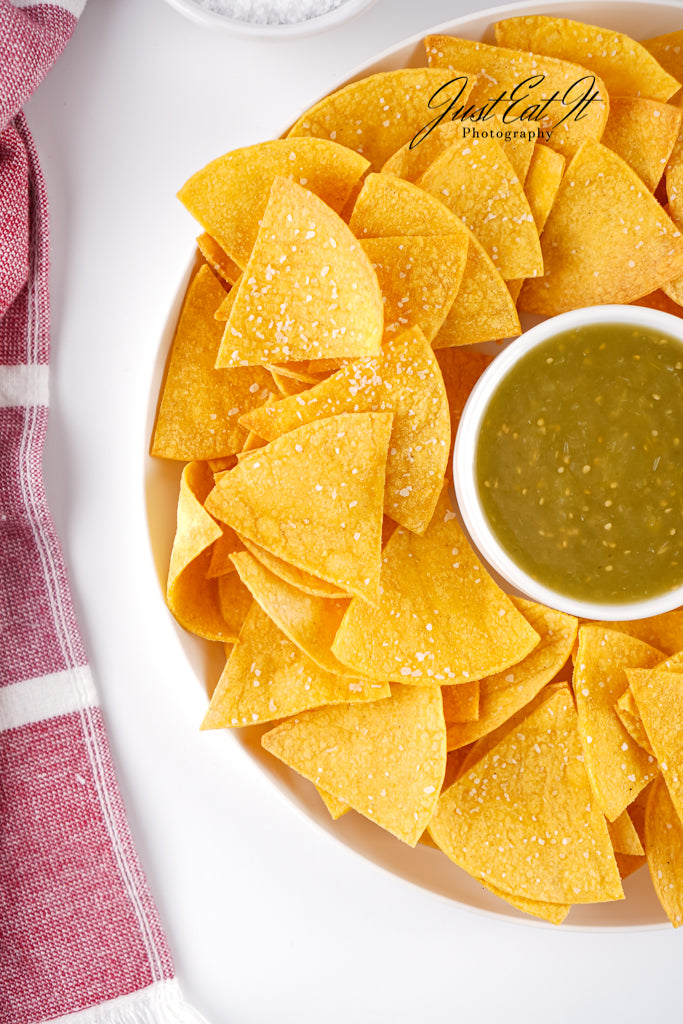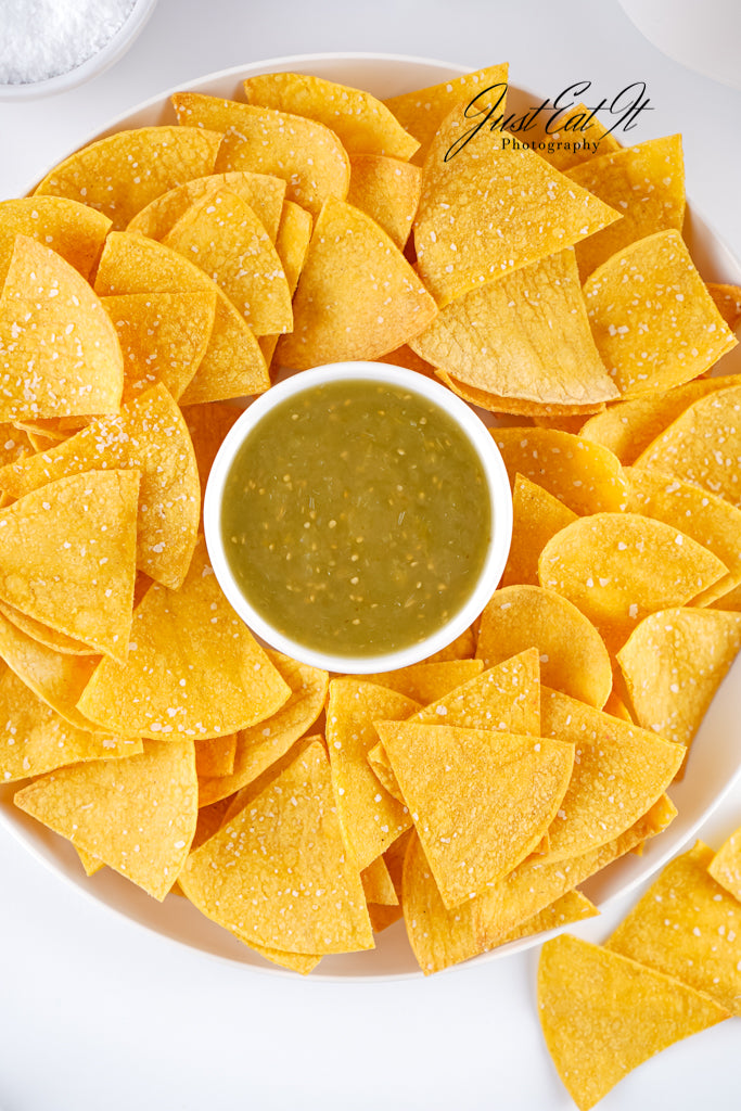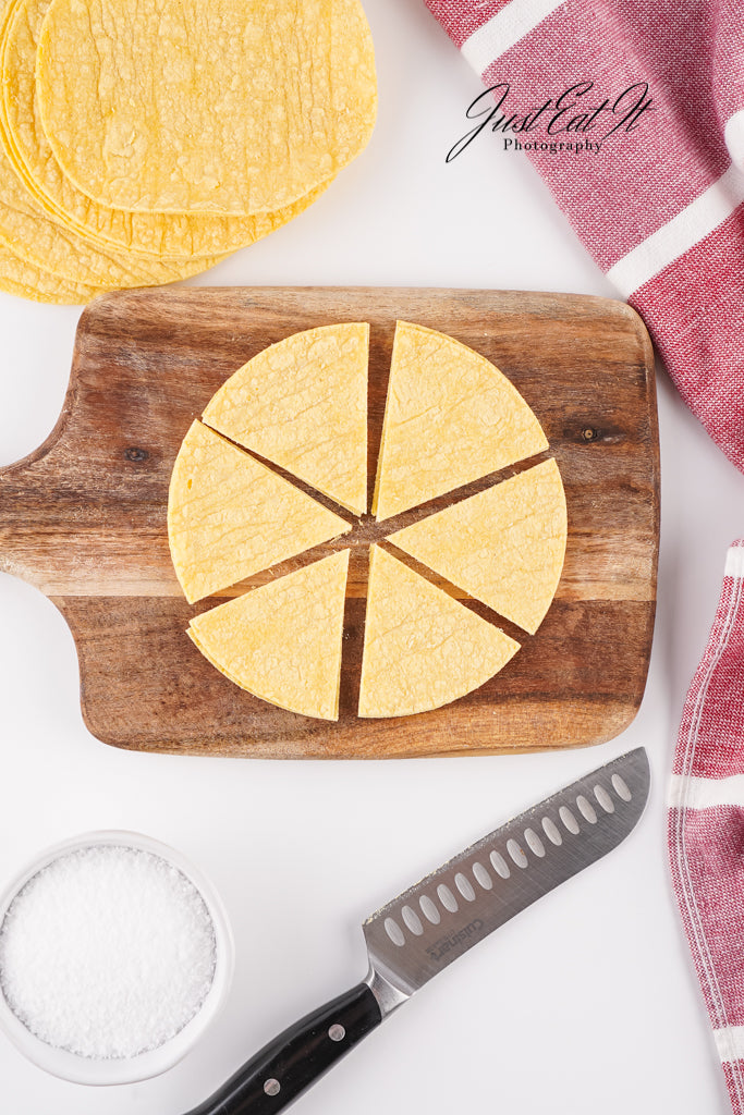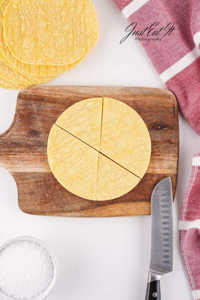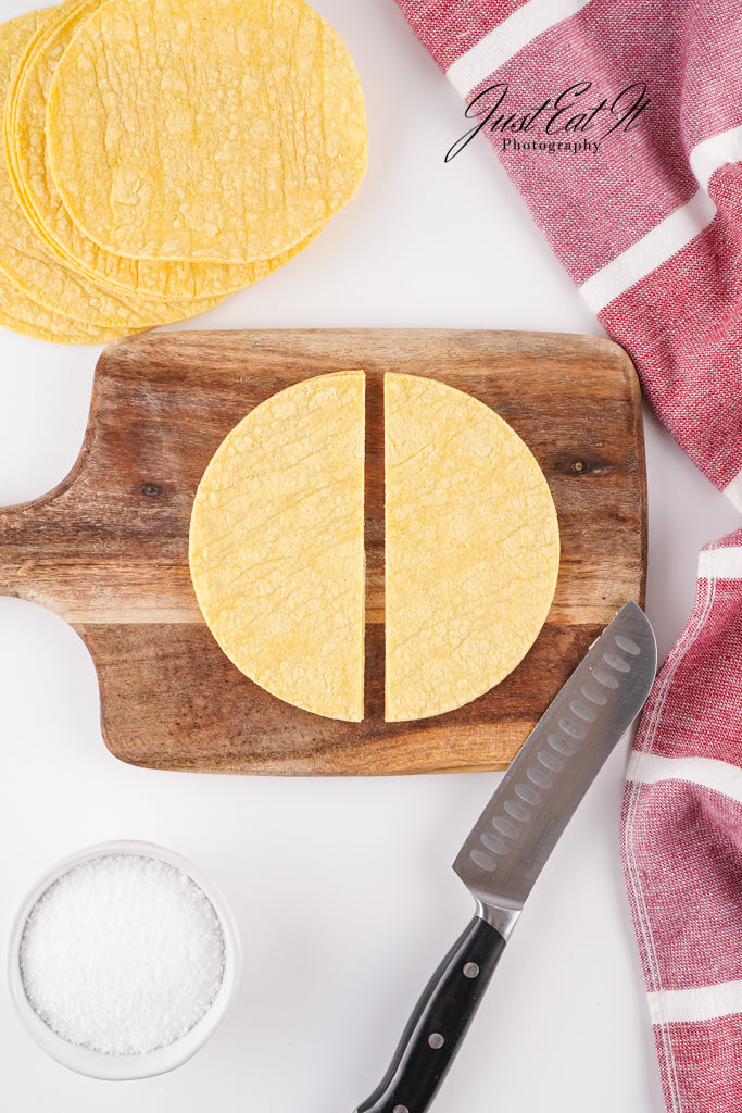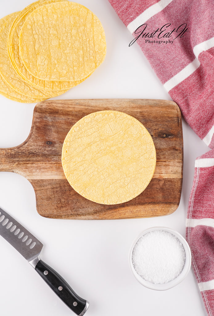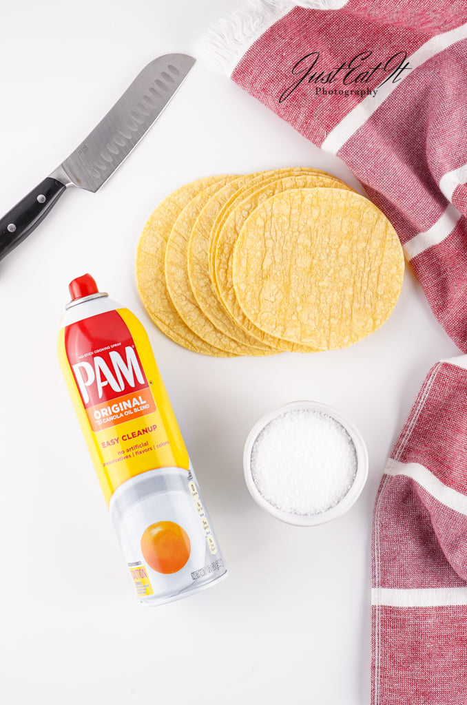 - Ingredients: corn tortillas, coarse salt, and cooking spray.