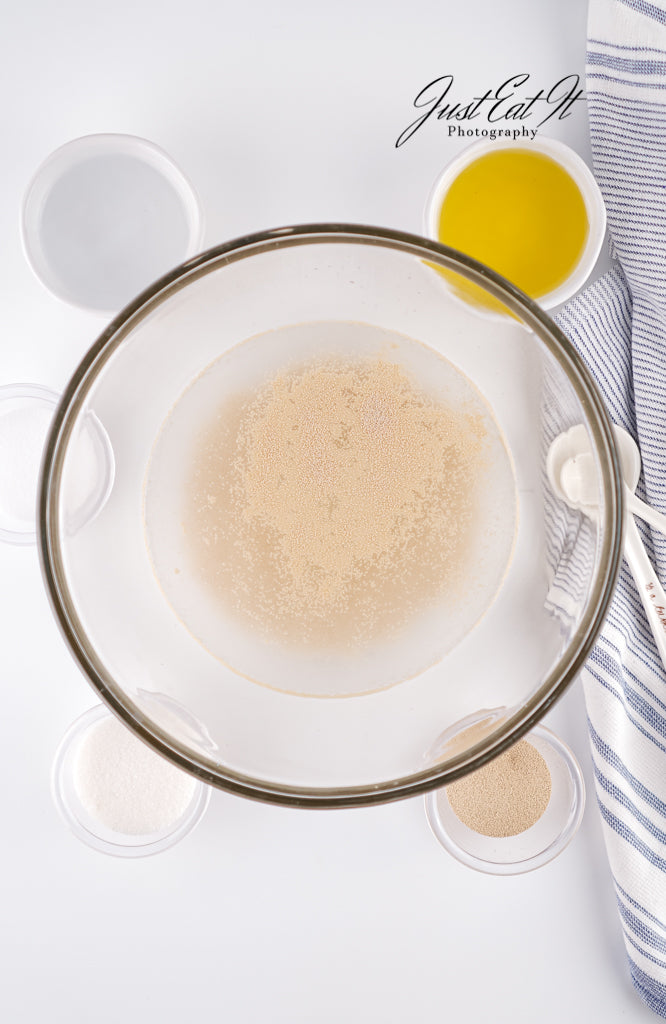 - Ingredients: all purpose flour, water, olive oil, sugar, yeast, and salt.