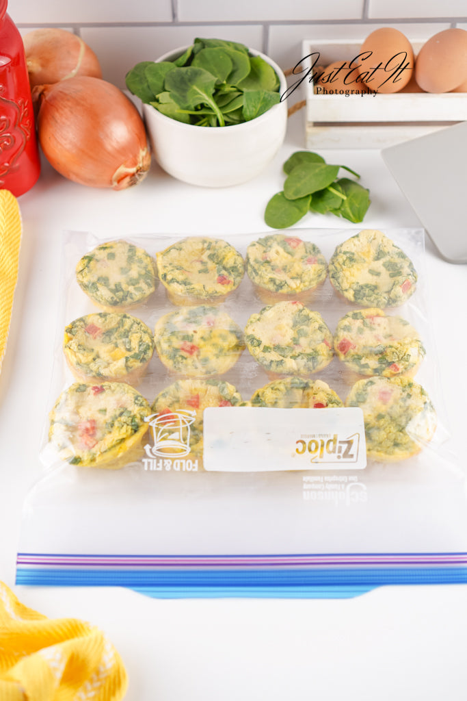 - Intro: These Freezer-Friendly Egg Bites only take a few minutes to toss together and are packed with protein! Eggs are mixed with cottage cheese and seasonings, then packed with onion, bell pepper, and spinach for a nutritious start to the day.