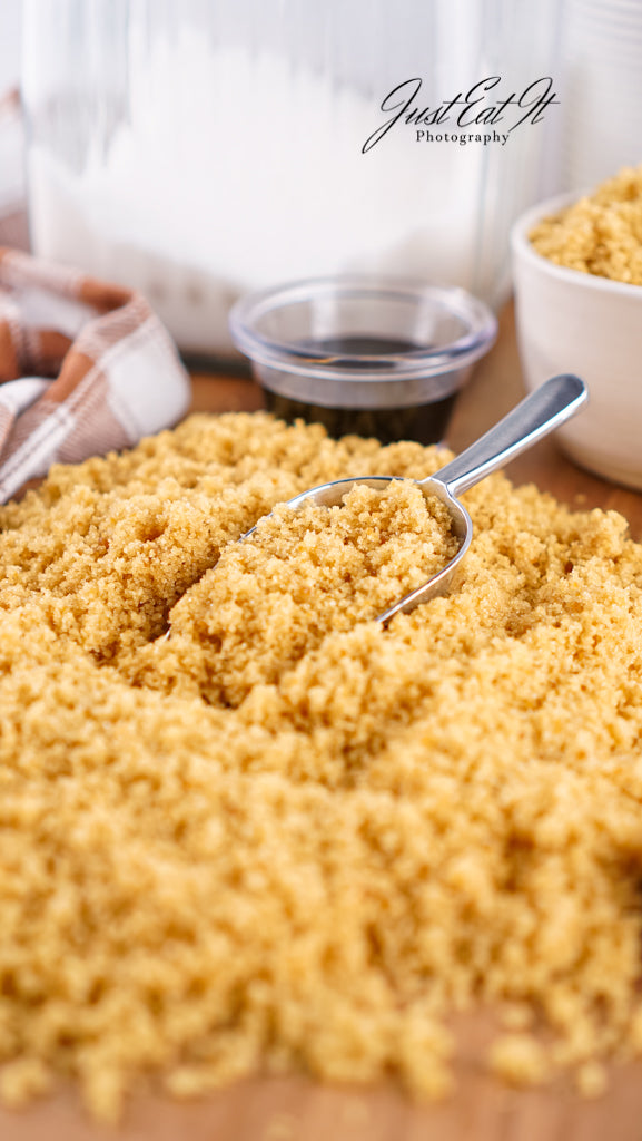 - Intro: Homemade Brown Sugar only requires two ingredients and five minutes of your time. Rich, thick molasses is combined with white granulated sugar in a food processor to create a moist, decadent brown sugar.