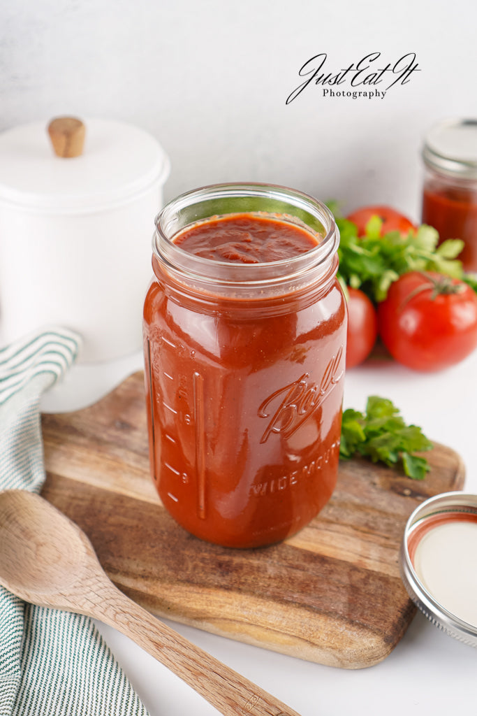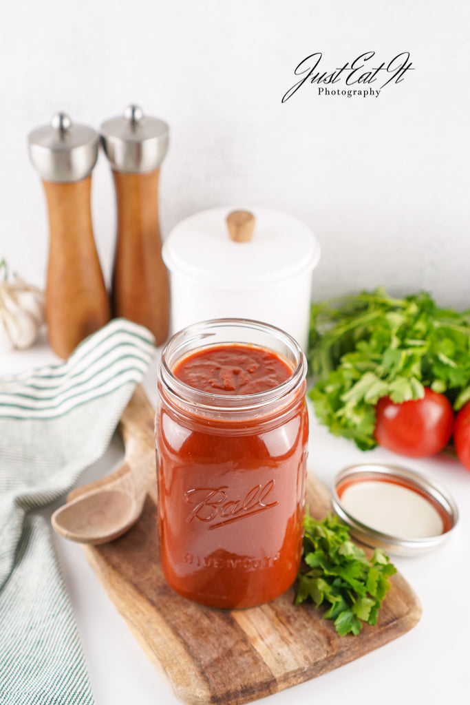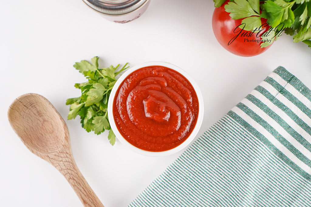 - Ingredients: tomato paste, tomato sauce, apple cider vinegar, water, white sugar, brown sugar, garlic powder, salt, pepper, and onion powder.
