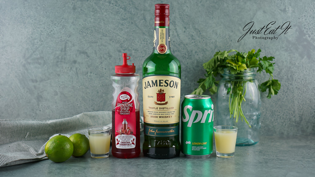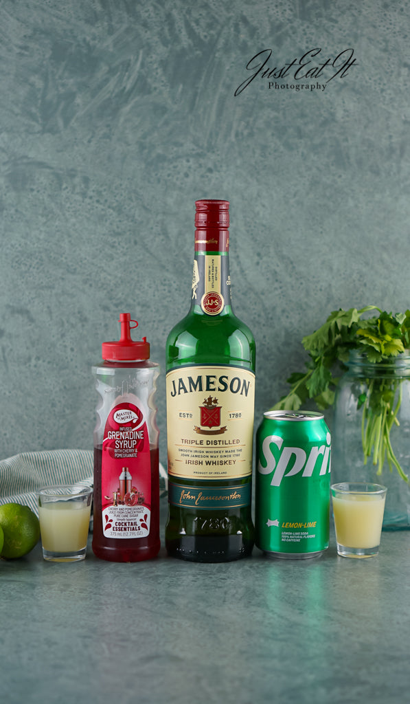 - Ingredients: lemon lime soda, Irish whiskey, grenadine, lime juice, lemon juice, and lime slices, ice, and maraschino cherries as optional ingredients.