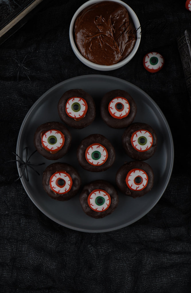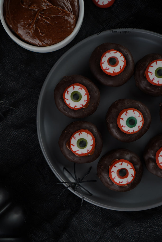 - Intro: These Mini Donut Eyeballs only take three ingredients and a few minutes to whip up. Perfect for a party treat or just a fun snack for the kids around Halloween.