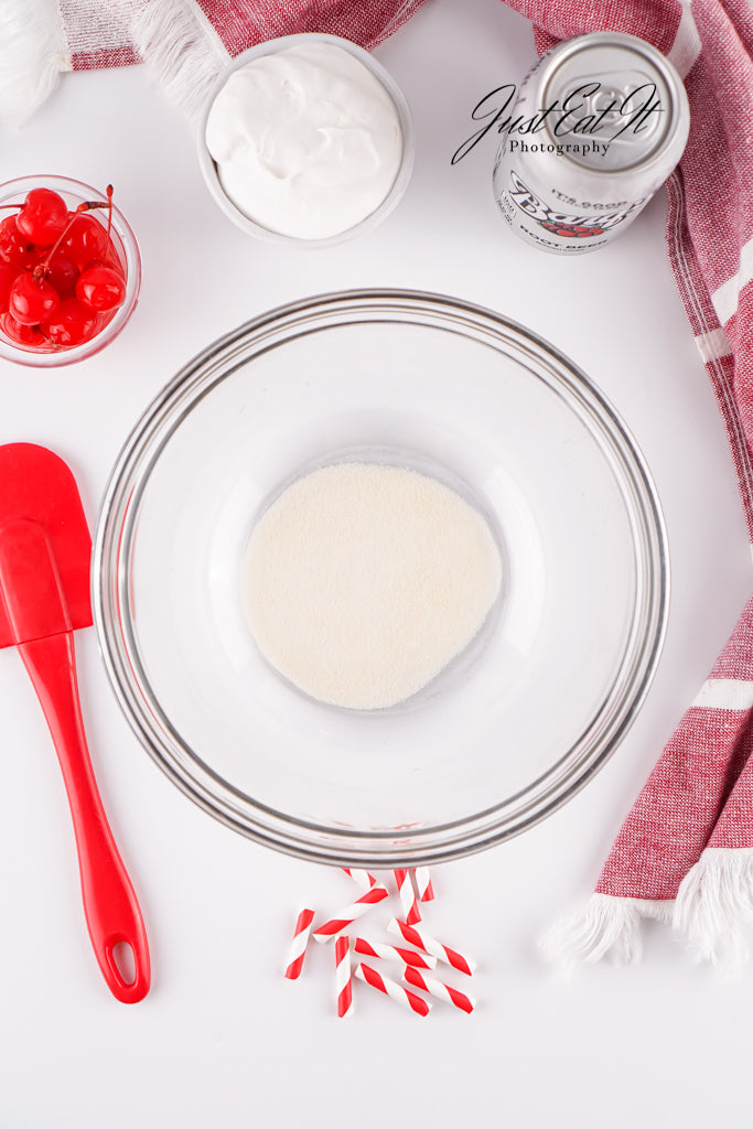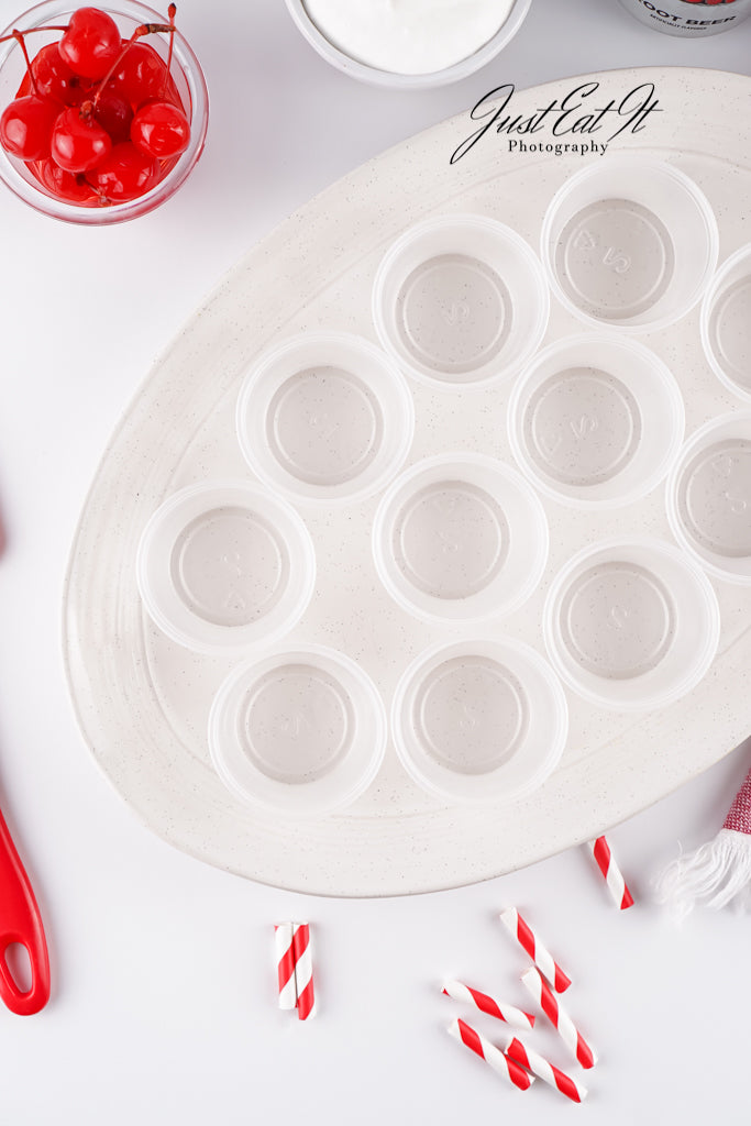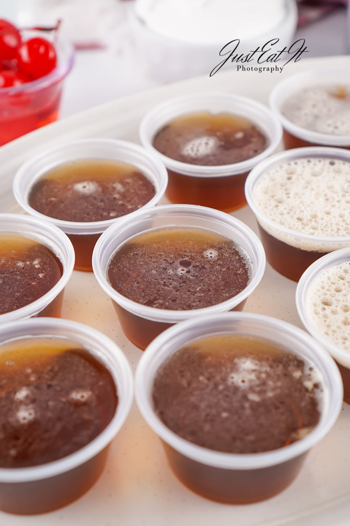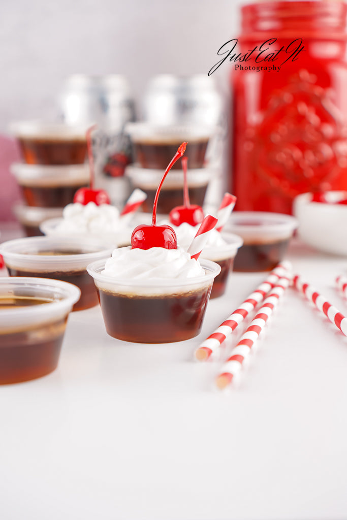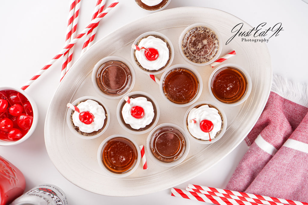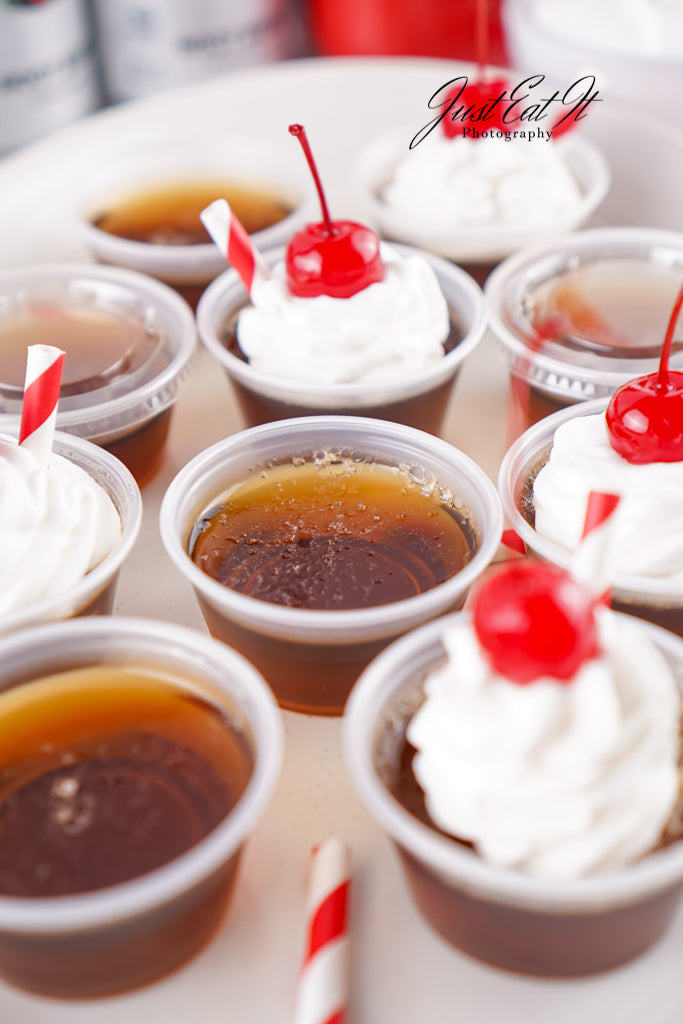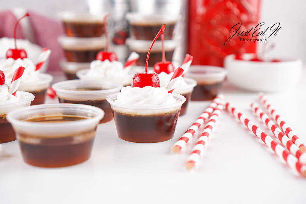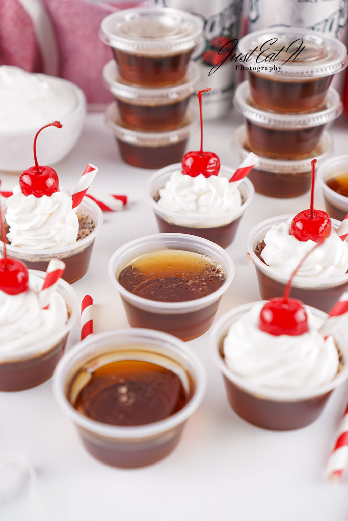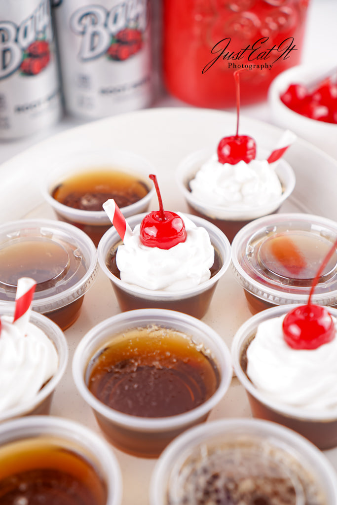 - Ingredients: unflavored gelatin, root beer, vanilla vodka, water, whipped cream, and maraschino cherries.