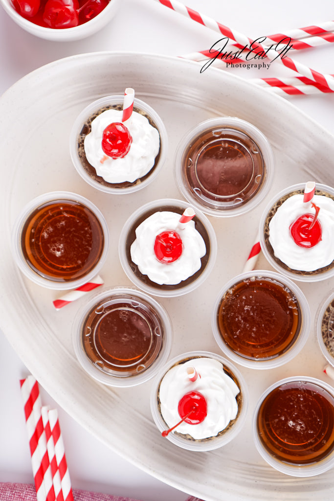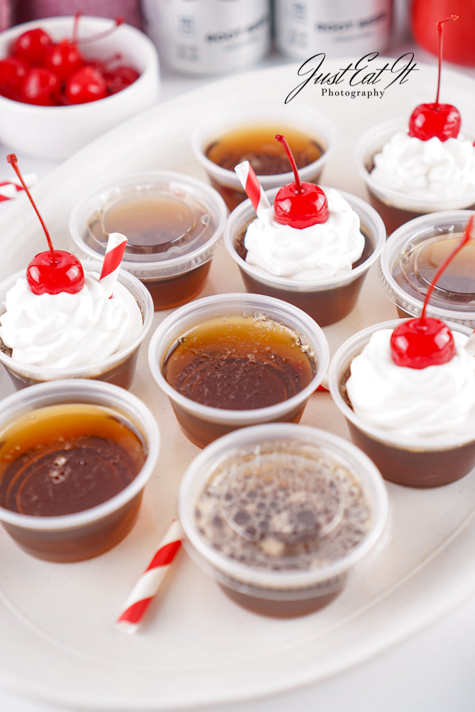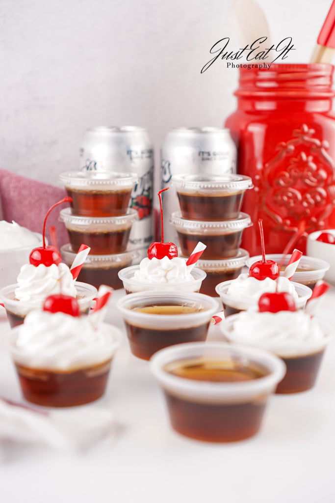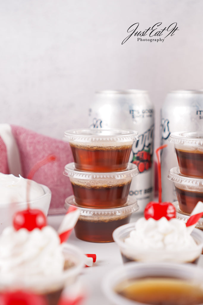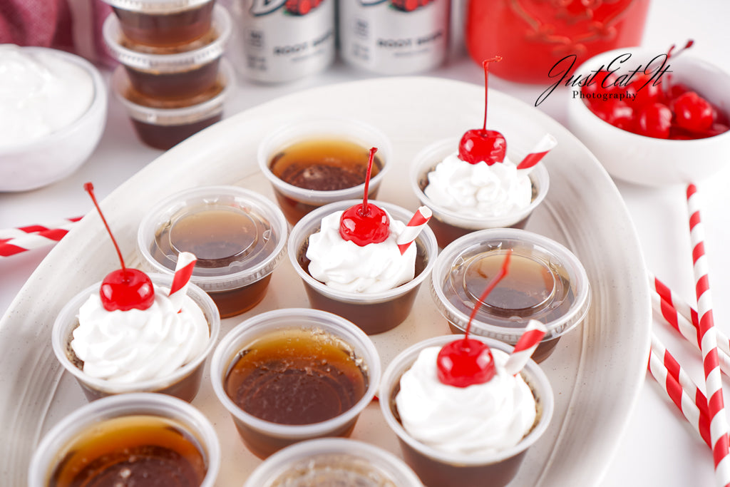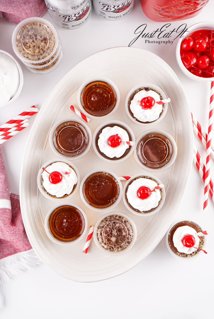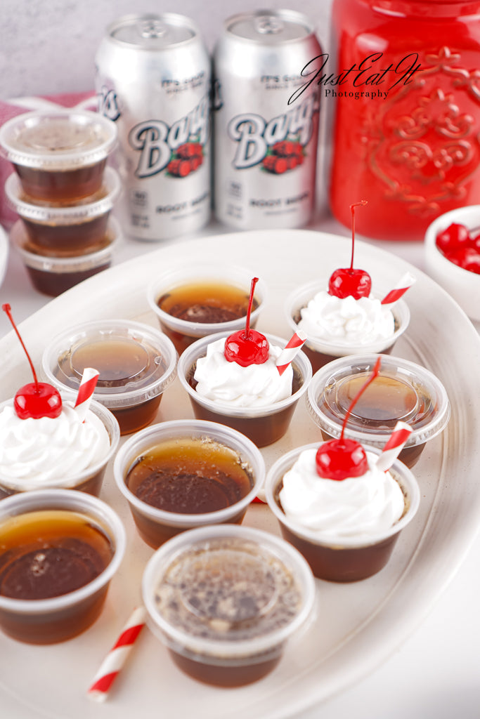 - Intro: Root Beer Float Jello Shots tastes just like the real thing, but for adults! Root beer and vanilla vodka carry the flavor and kick, while the whipped cream and cherry offer the perfect finish. Garnish with mini straws for an adorable aesthetic.
