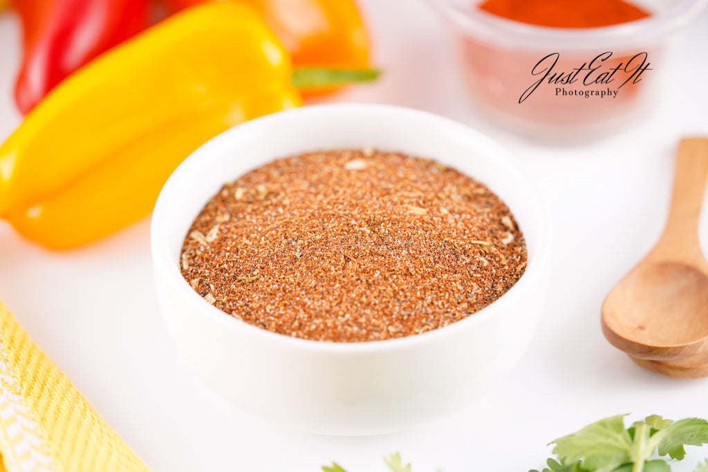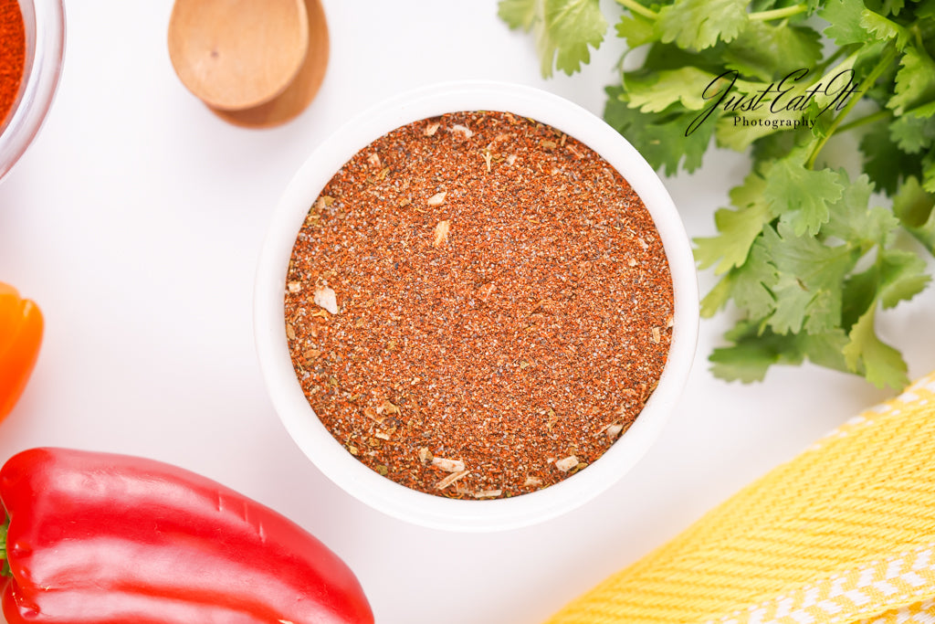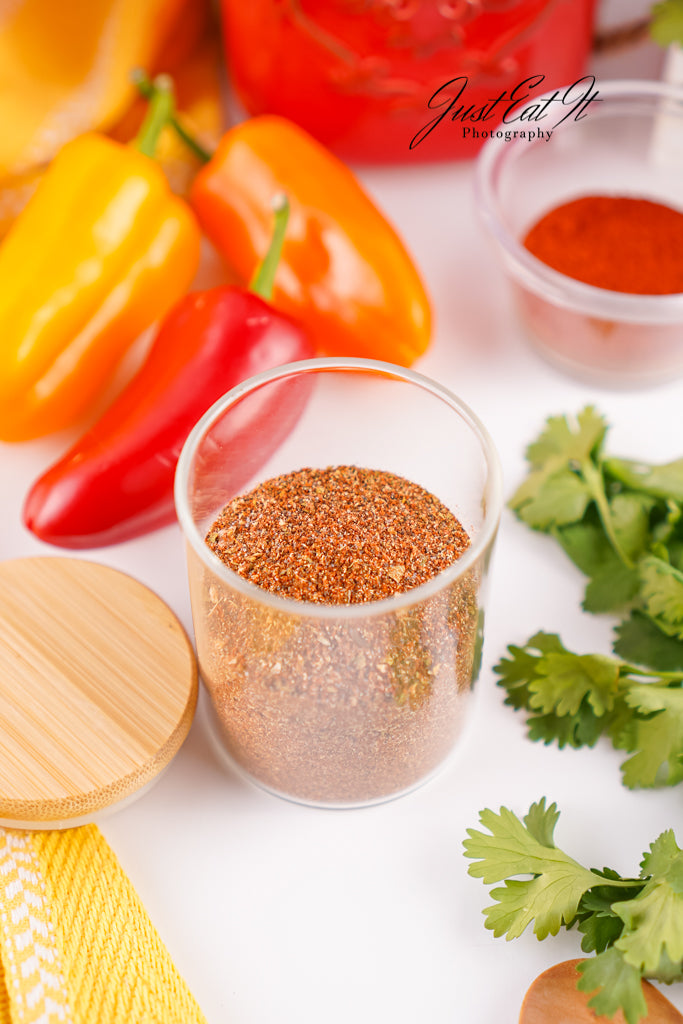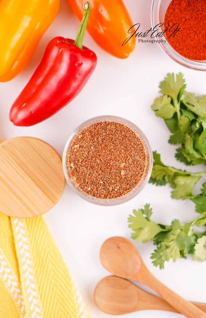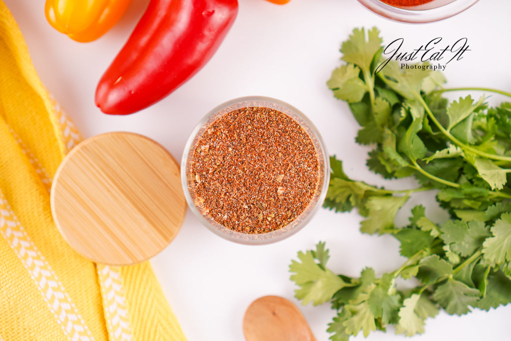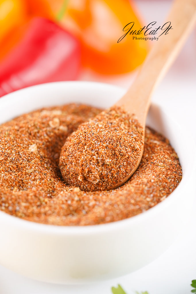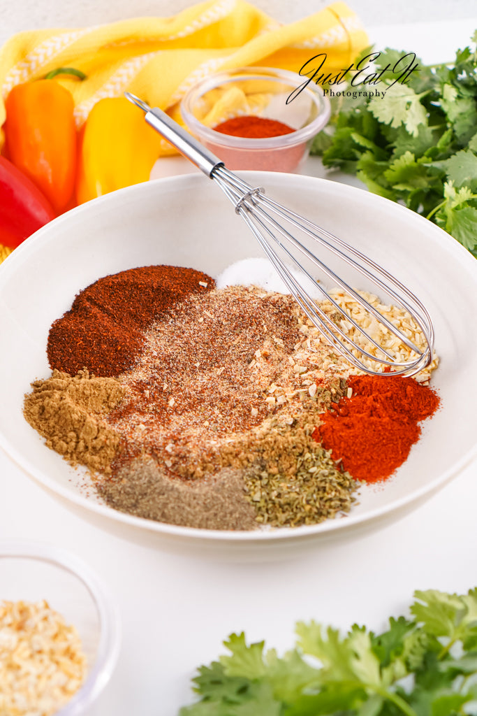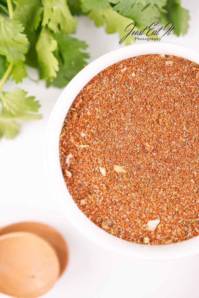 - Ingredients: chili powder, cumin, salt, pepper, smoked paprika, dried minced onion, garlic powder, and dried oregano.