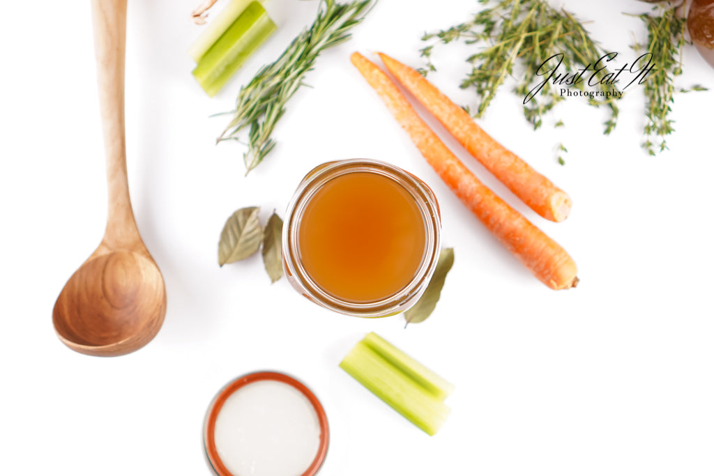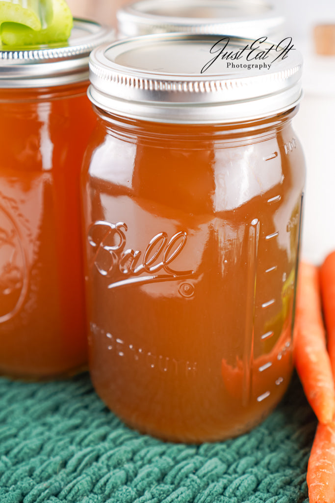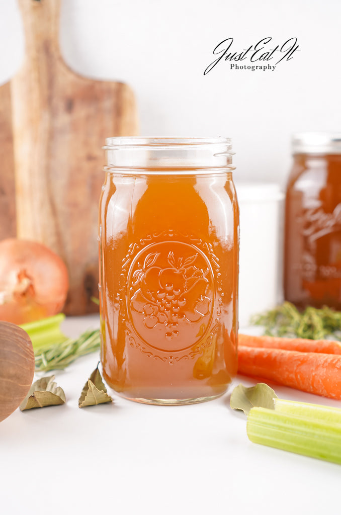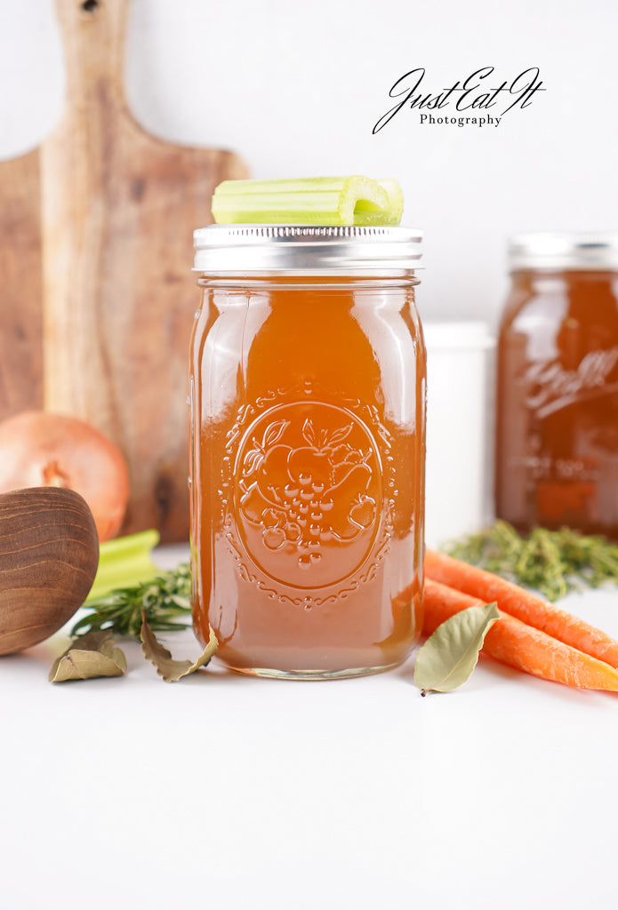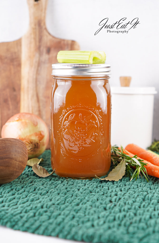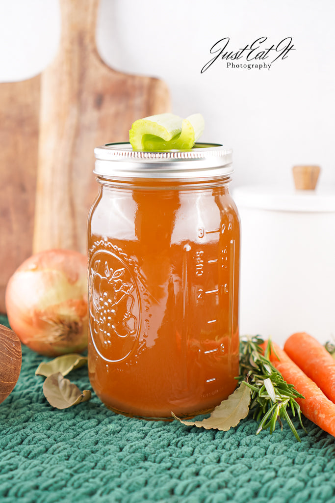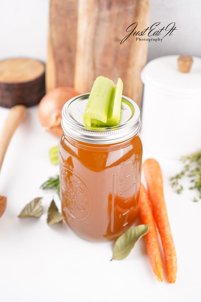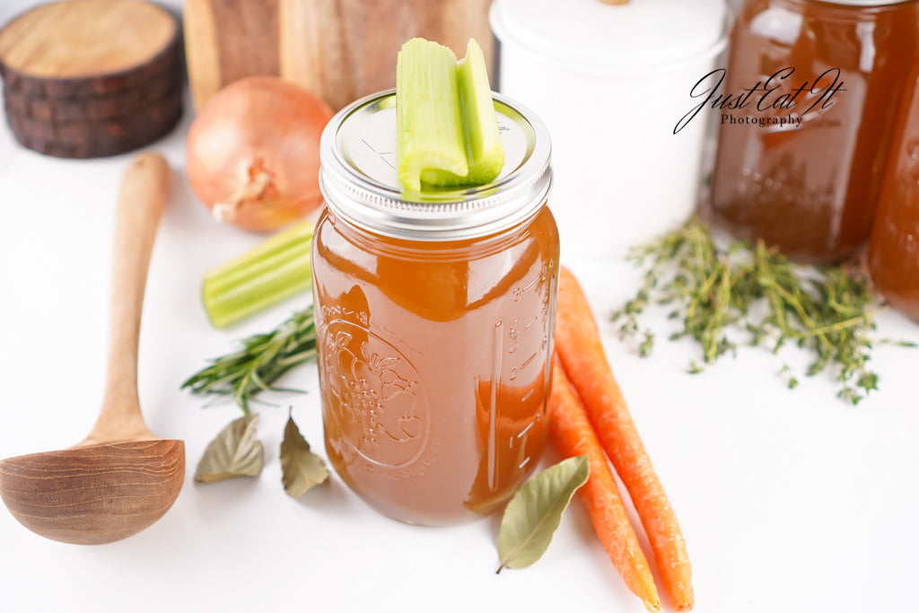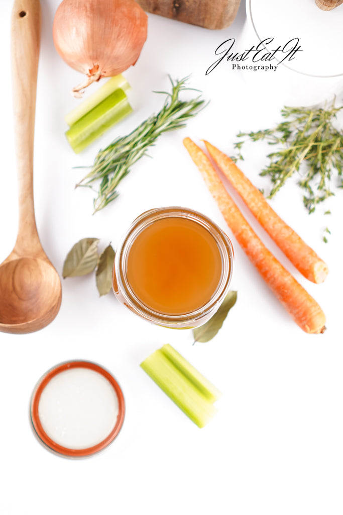 - Ingredients: water, celery, onion, carrots, garlic, thyme, rosemary, sage, bay leaves, whole peppercorns, and salt.