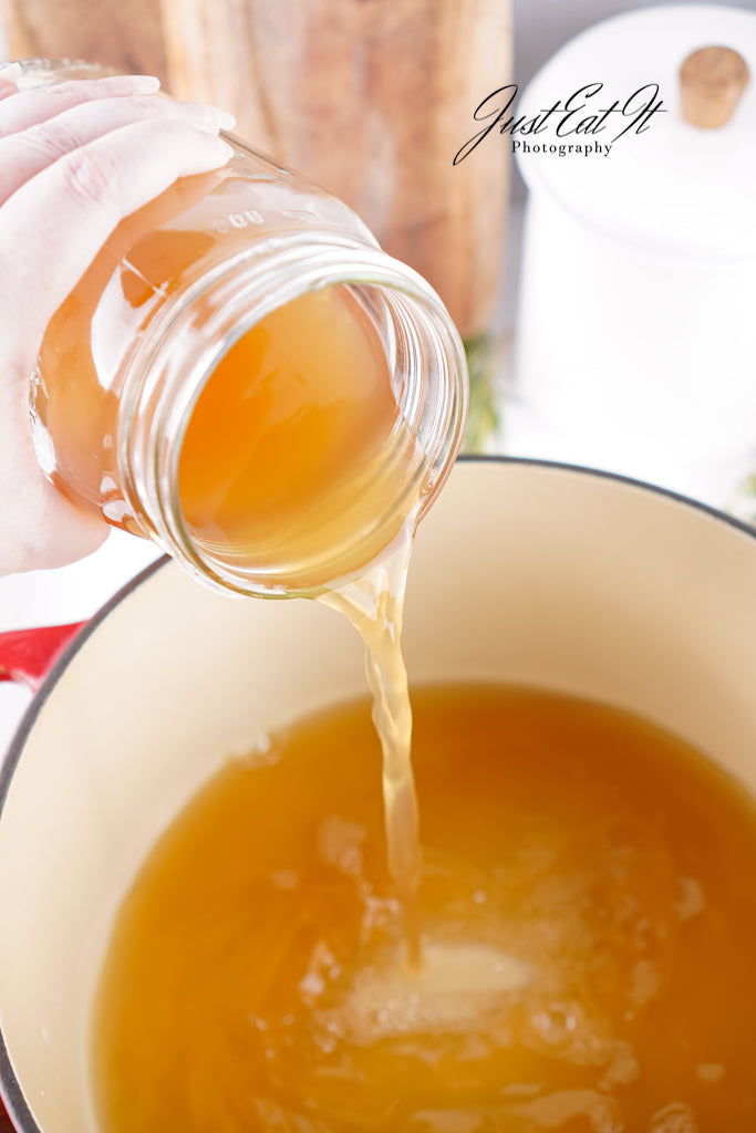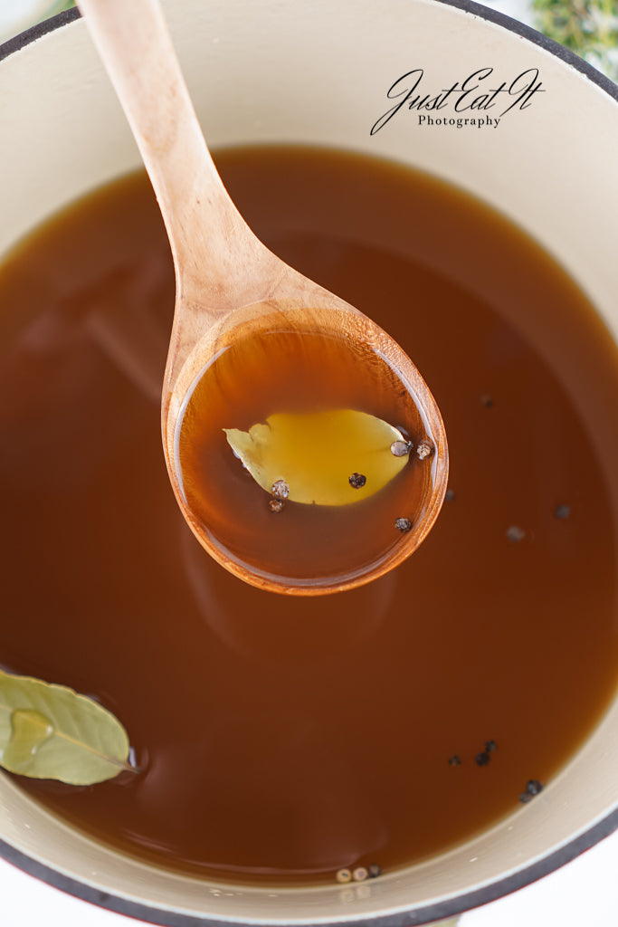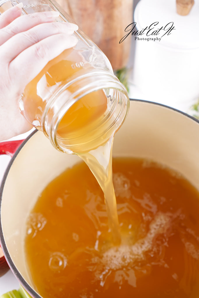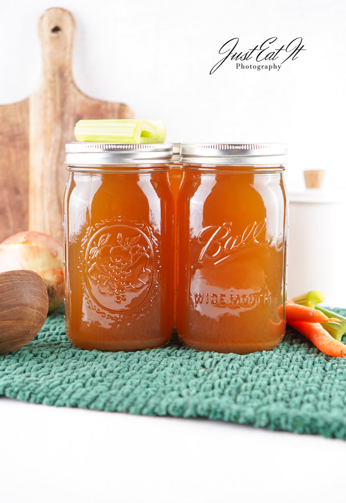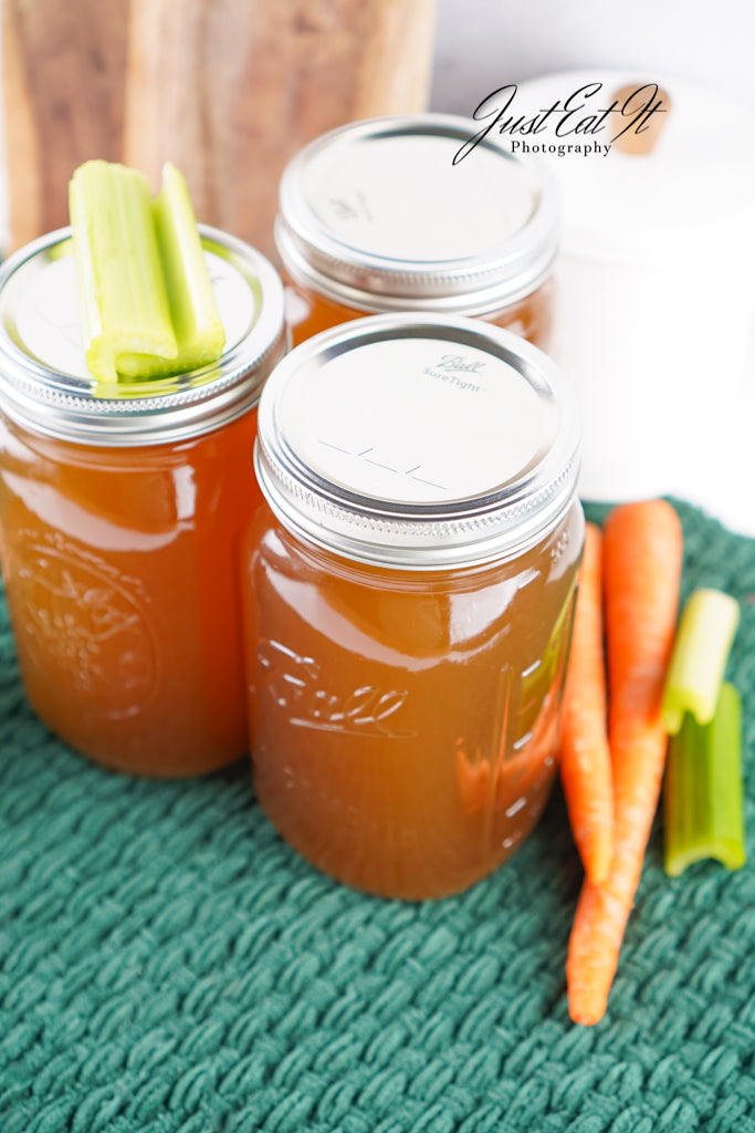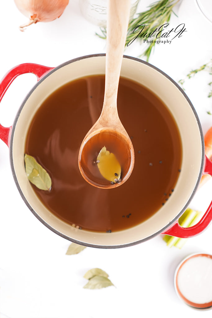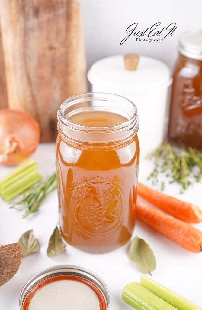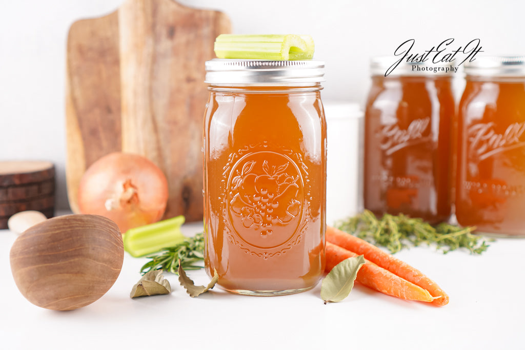 - Ingredients: water, celery, onion, carrots, garlic, thyme, rosemary, sage, bay leaves, whole peppercorns, and salt.