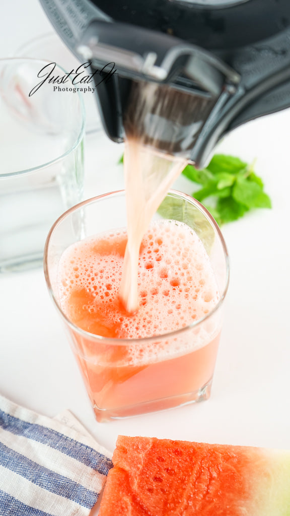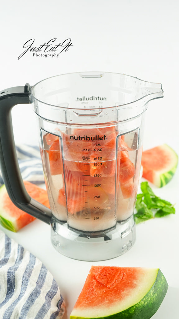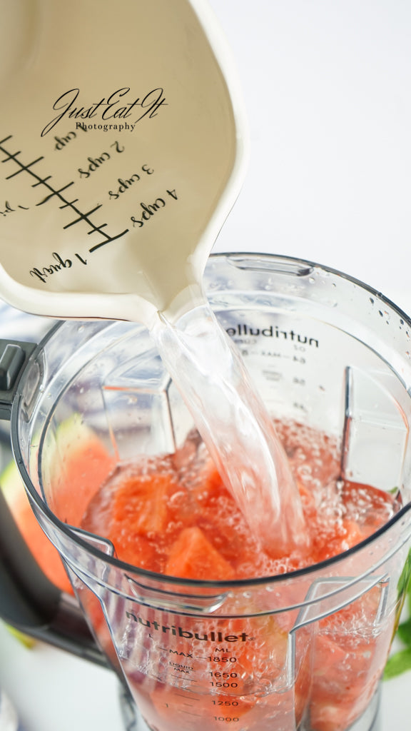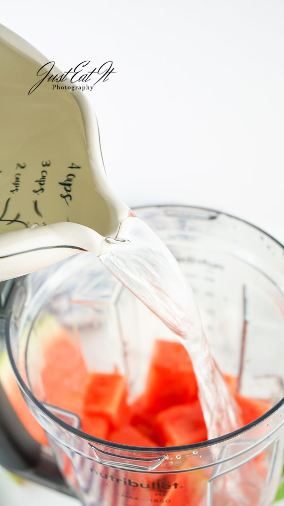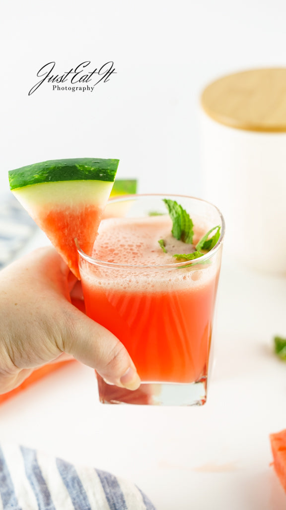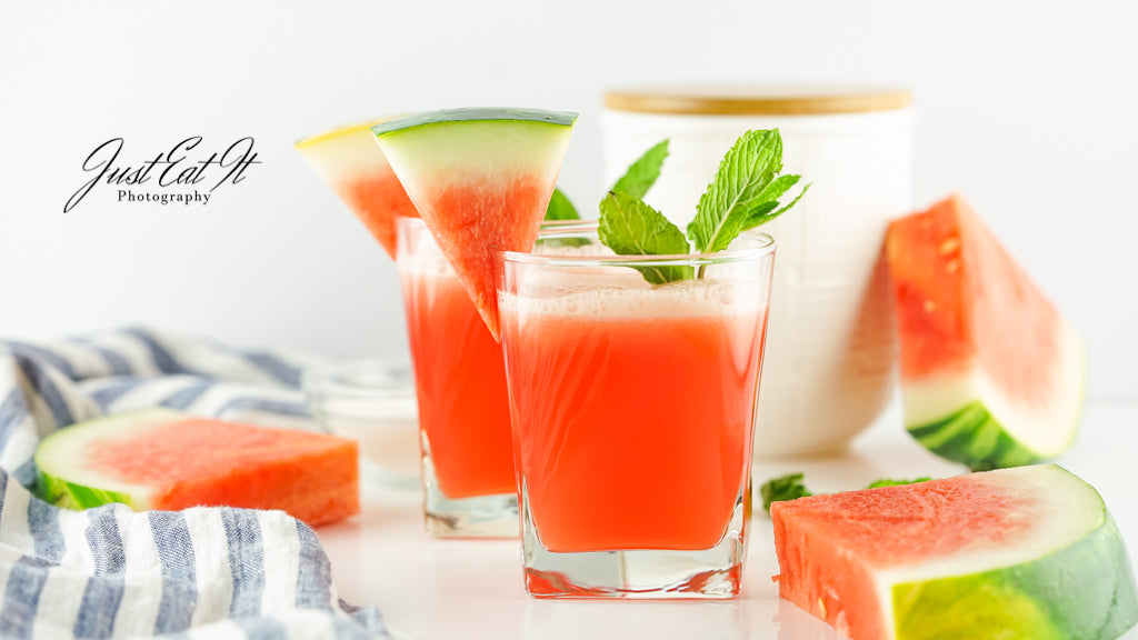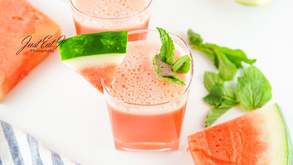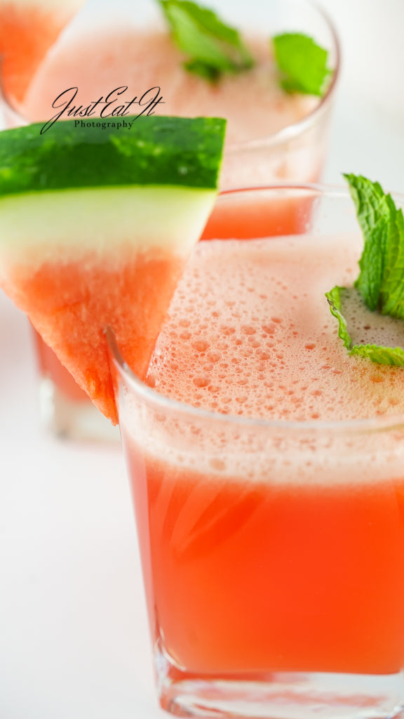 - Ingredients include watermelon, water, and sugar, with mint sprigs and extra small wedges of watermelon as optional garnishes.